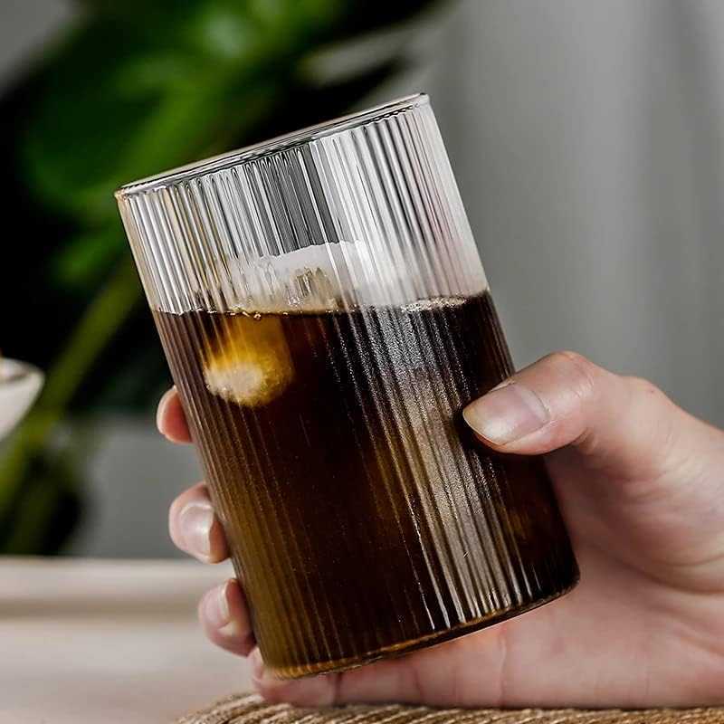 Gelas Kopi Susu Cafe Model Stripe Bergaris Tingkat Kaca Anti Panas Aesthetic Unik Menarik Glass Coffee Bertingkat Simple Berbagai Ukuran ml