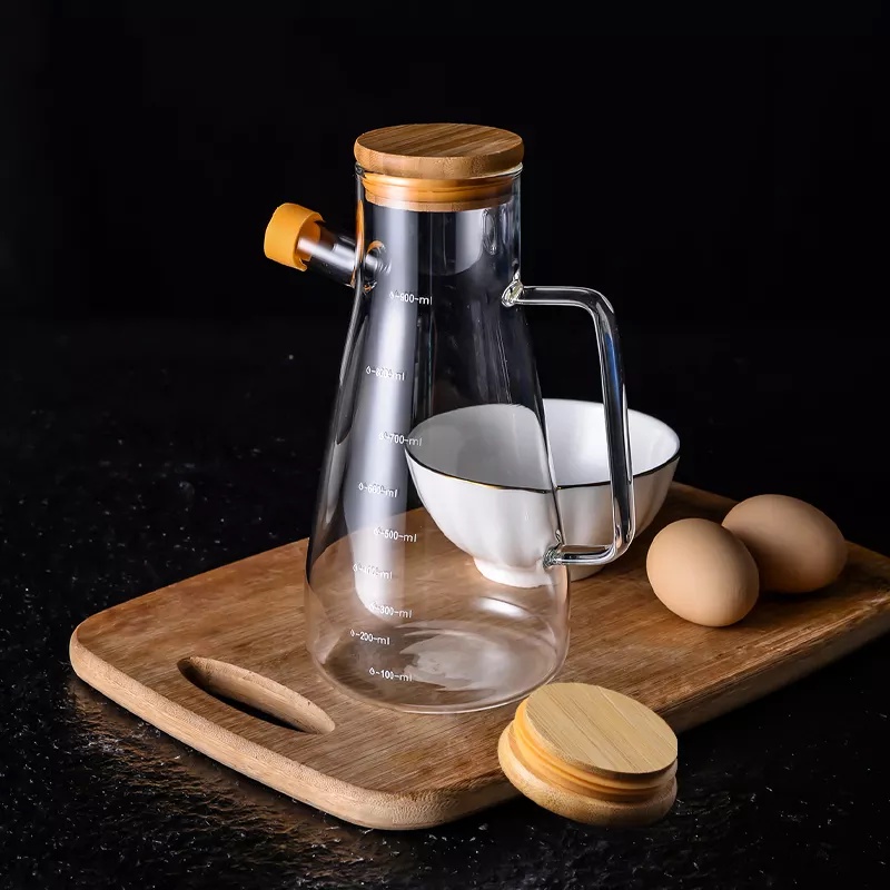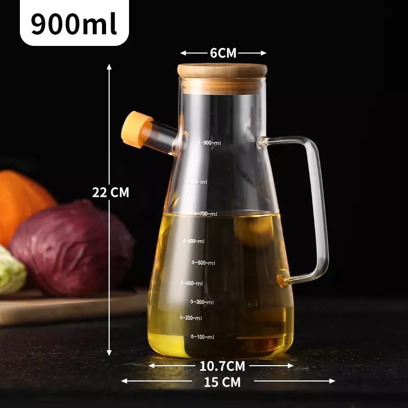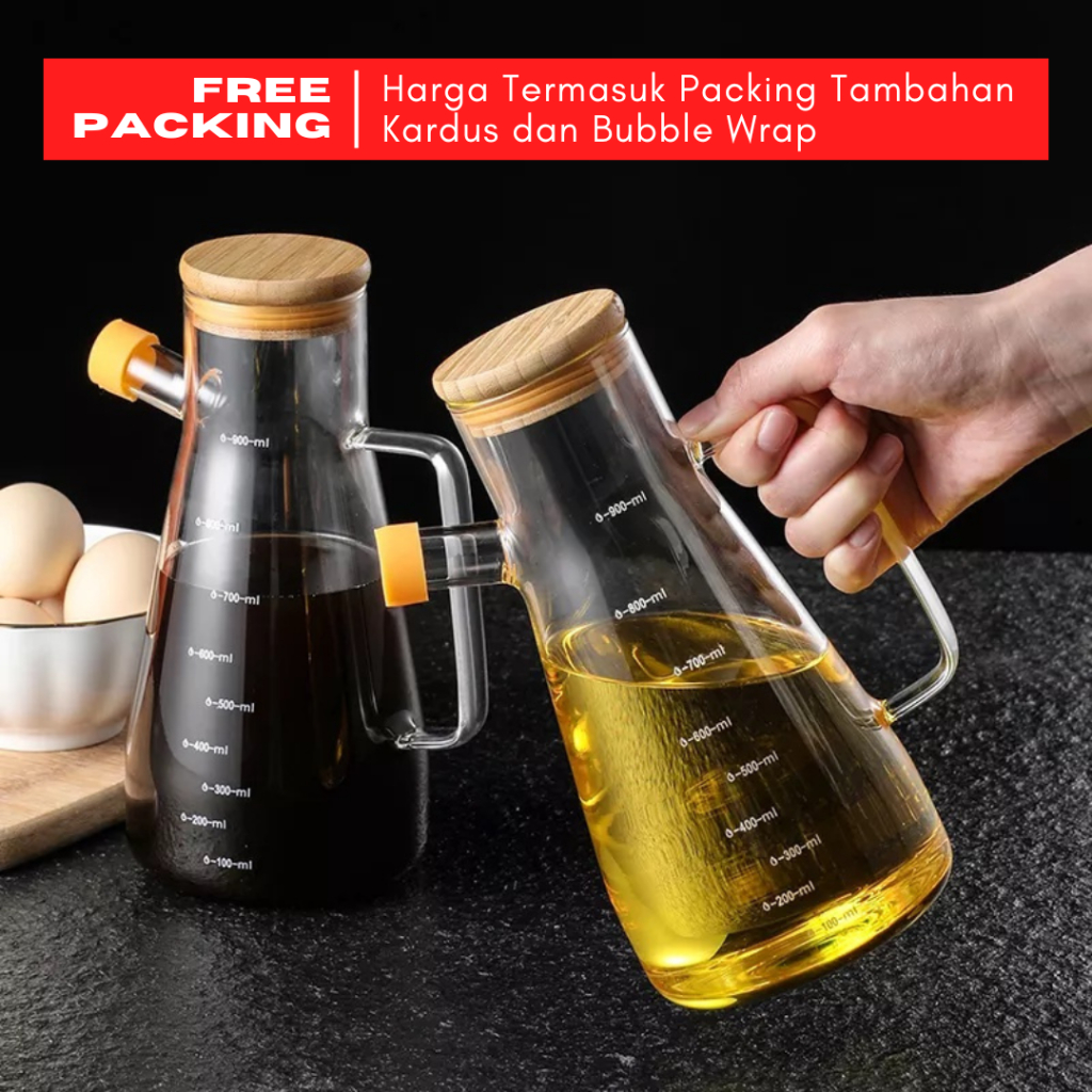 Botol Minyak Goreng Kaca Anti Panas Aesthetic – Tempat Wadah Kecap Sirup Cuka Saus Bahan Kaca Tutup Kayu Bambu Tahan Panas Heat Reasistant
