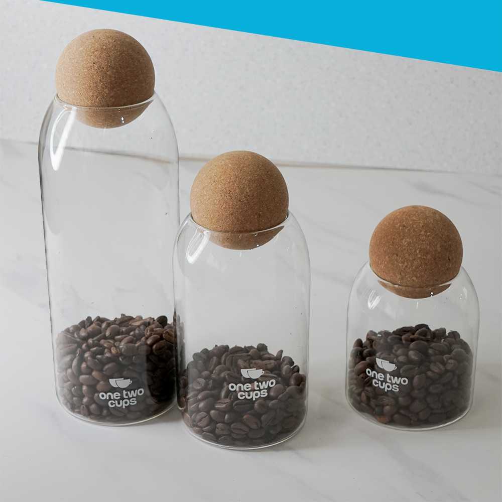 Toples Kaca Unik Tutup Bola Kayu / Wadah Tempat Penyimpanan Gula Teh Kopi Tepung Bumbu Dapur – Coffee Sugar Tea Jar Container