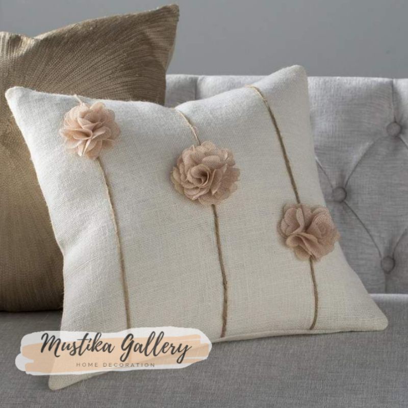 cushion cover / sarung bantal sofa premium aksen bunga frill 40x40
