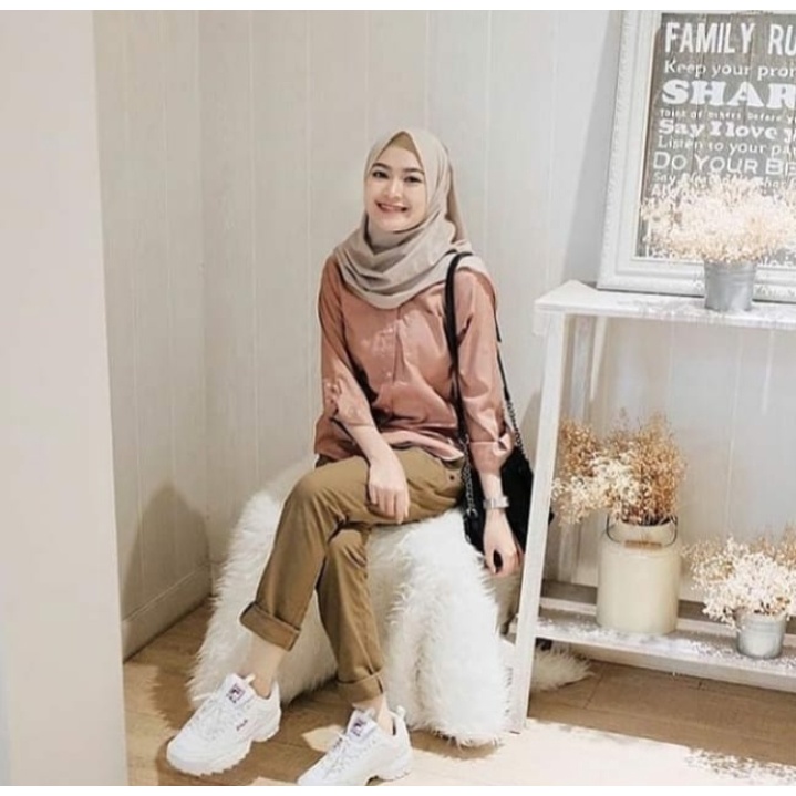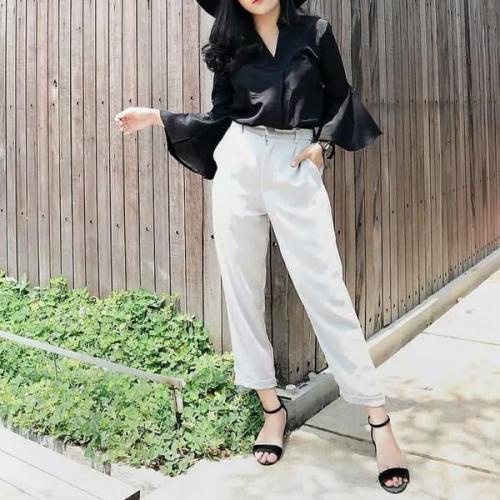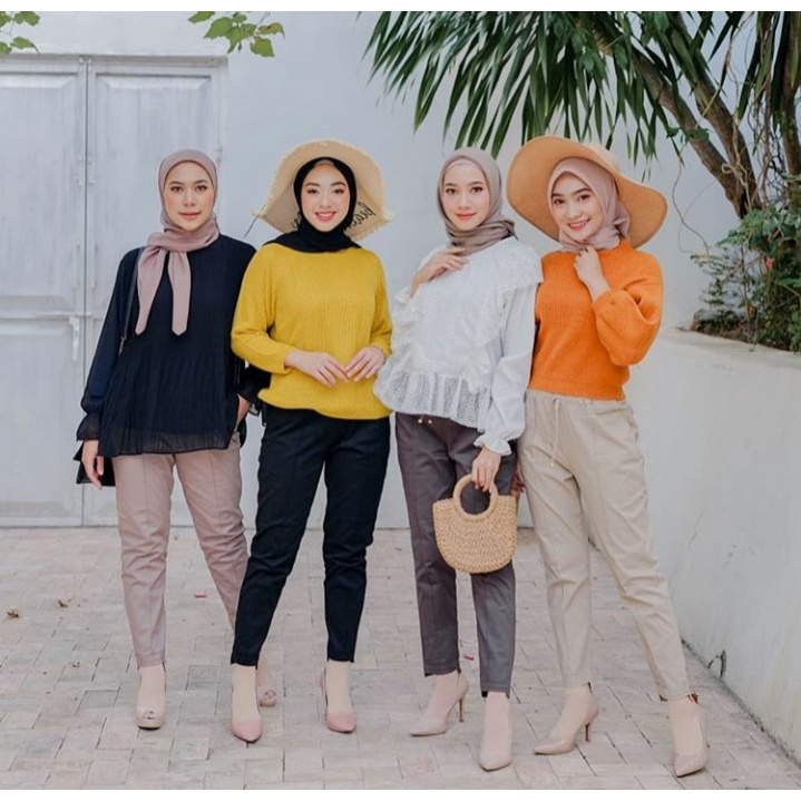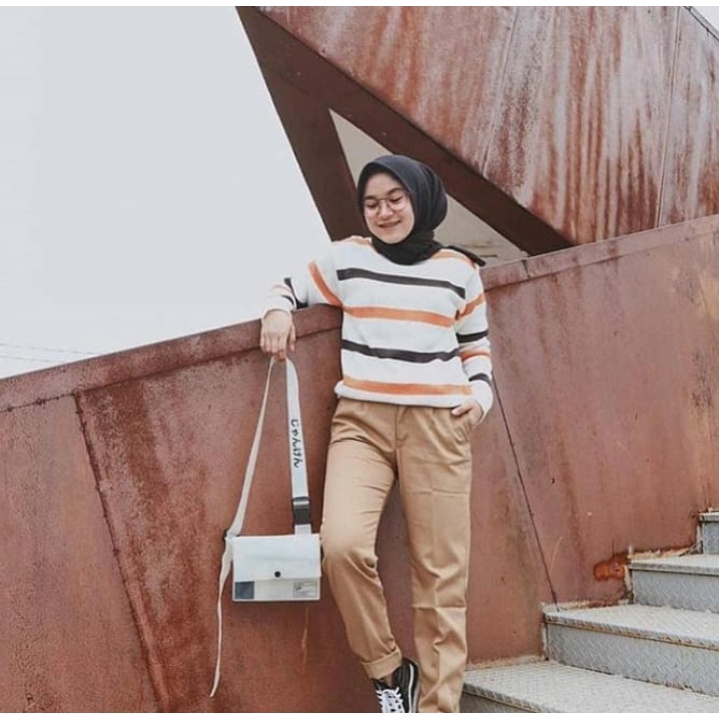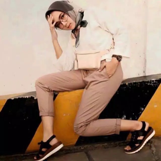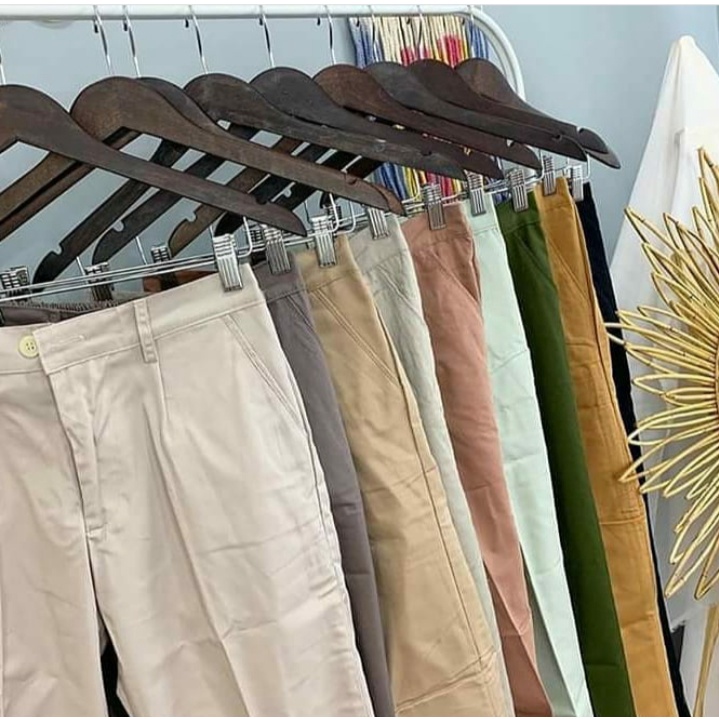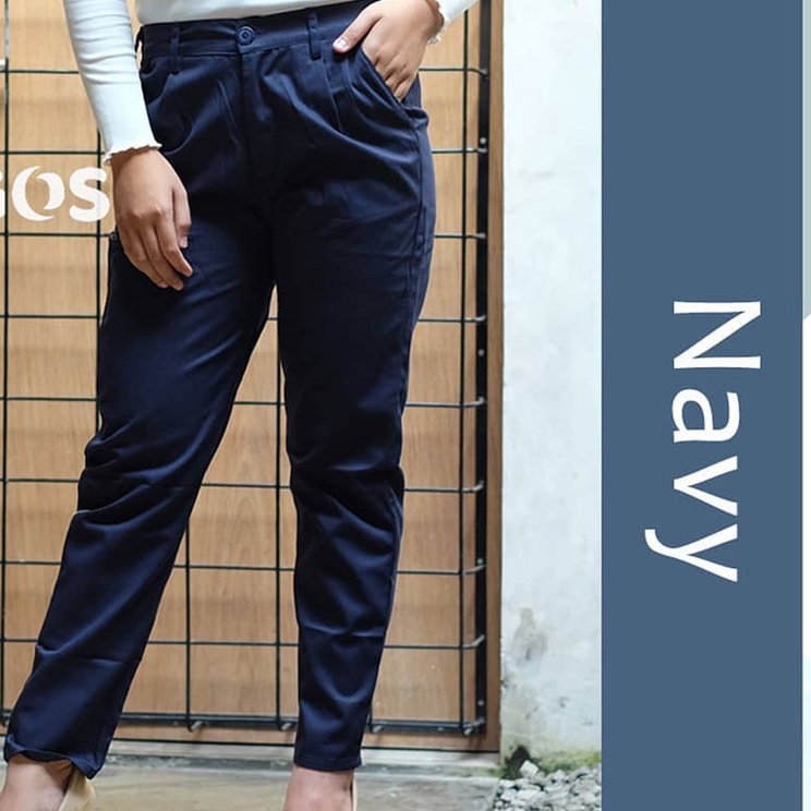 CHINO PANTS WANITA PINGGANG KARET SLIM KATUN / GROSIR BAGGY PANTS LIPIT JONJING / CELANA WANITA JUMBO