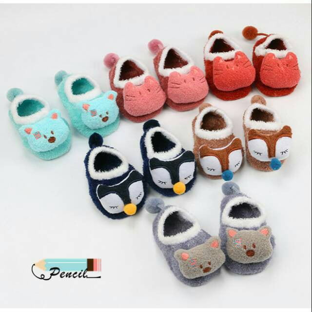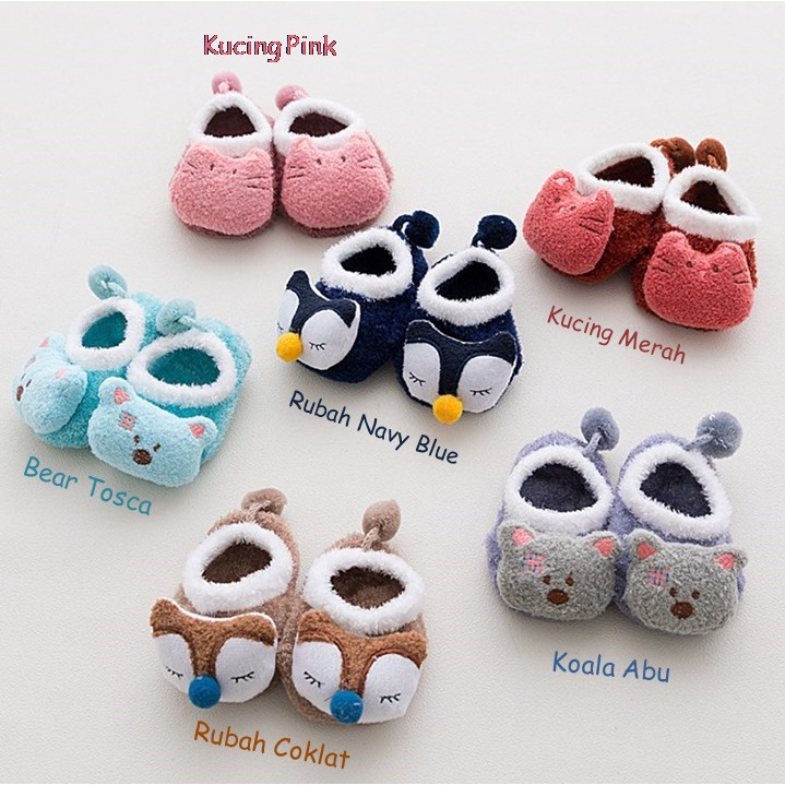 Kaos Kaki Prewalker Bayi / Kaus Kaki Bulu Lembut Motif Animal / sepatu bulu newborn / kaos bulu usia 0-6 bulan