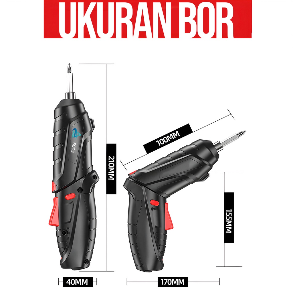 Suksestech Bor ScrewDriver 1 Set Bor Tangan Drill Bolak Balik 37 Mata Bor 4,2 Volt 6003