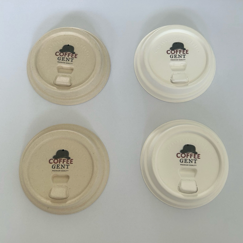 Custom Logo Bagasse Cup Lid Tutup Gelas Bagasse Untuk Paper Cup Gelas Kertas PET 8 oz 12 oz 16 oz