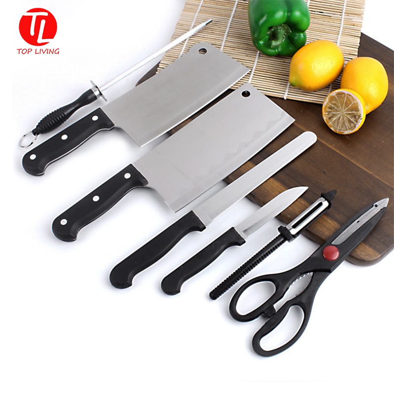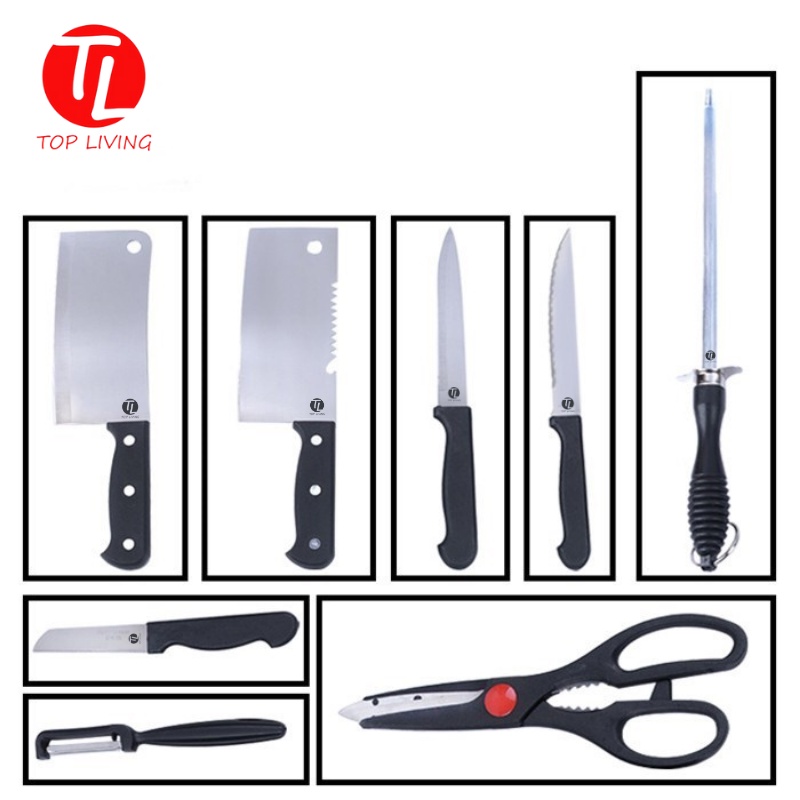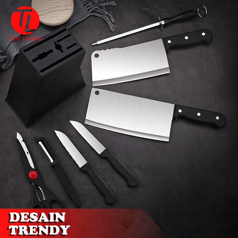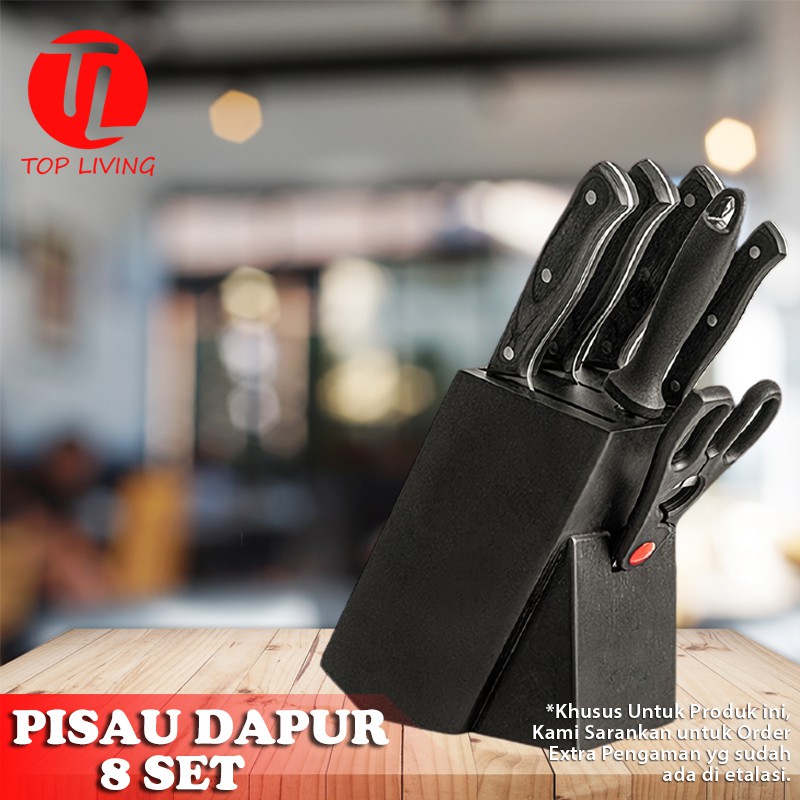Top Living Pisau Dapur 1 Set (8 Pcs) serbaguna dengan rak, cocok untuk daging, sayur, dan buah. Dapat Bayar di tempat (COD).