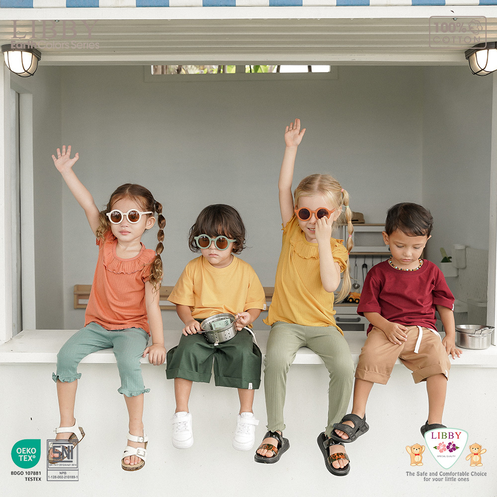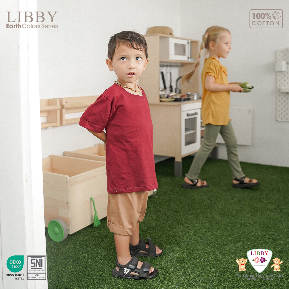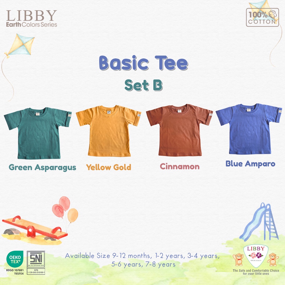 LIBBY Earth Kaos Atasan Polos Katun Anak Unisex 9 Bulan - 8 Tahun Basic Tee (1PCS)-Kaos Anak Laki-laki & Perempuan