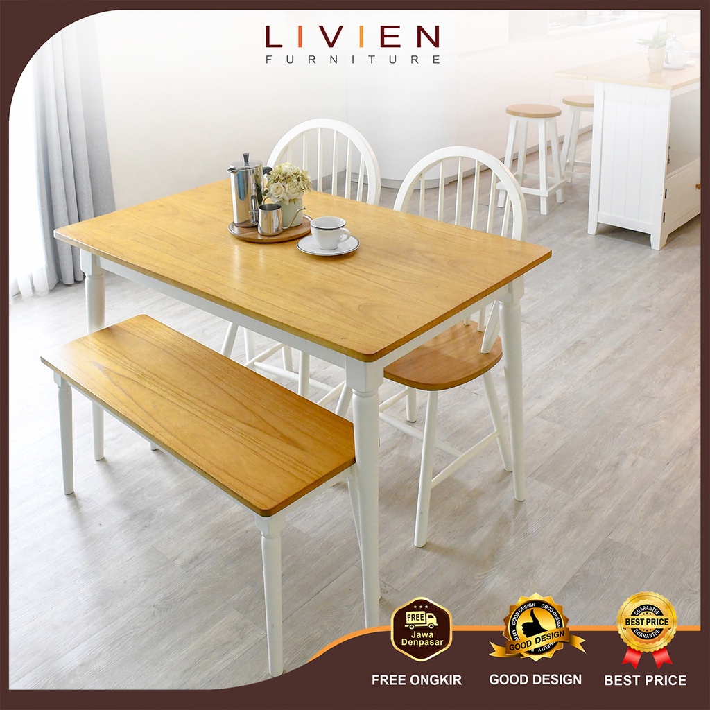 [LIVIEN] "Dining Table" Meja Makan Maple Story 2 kursi 1 bench Minimalis Termurah Livien