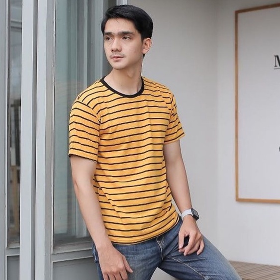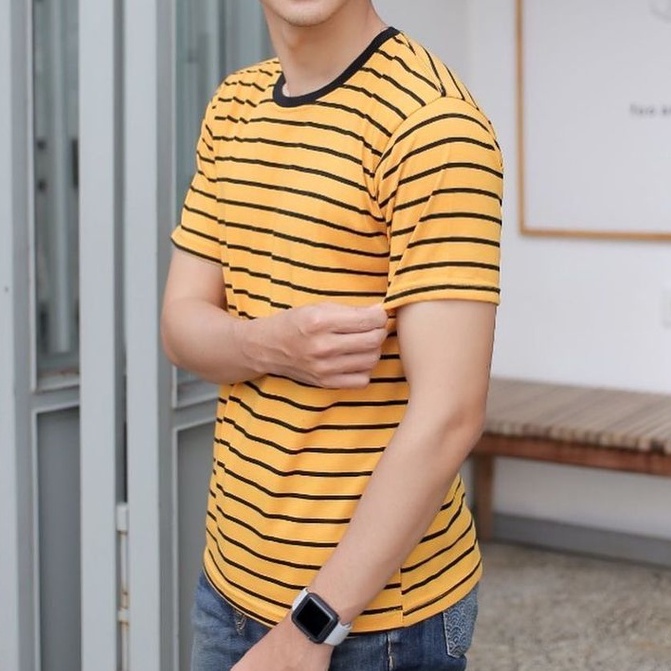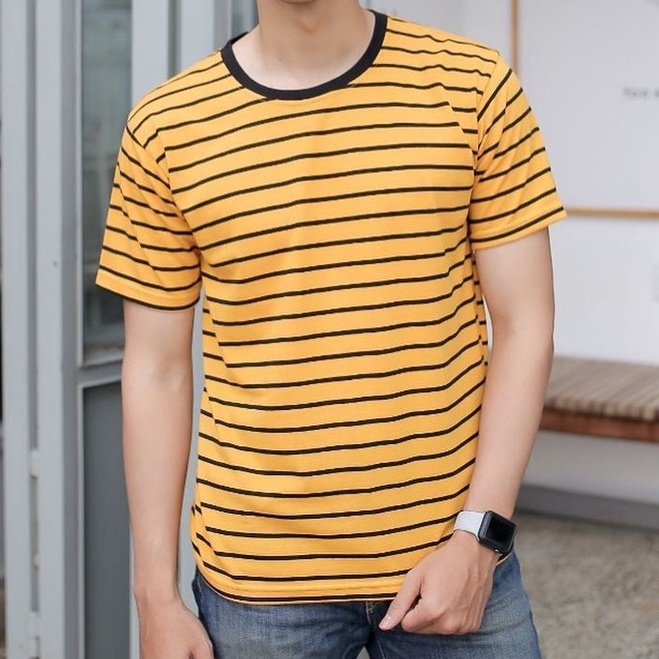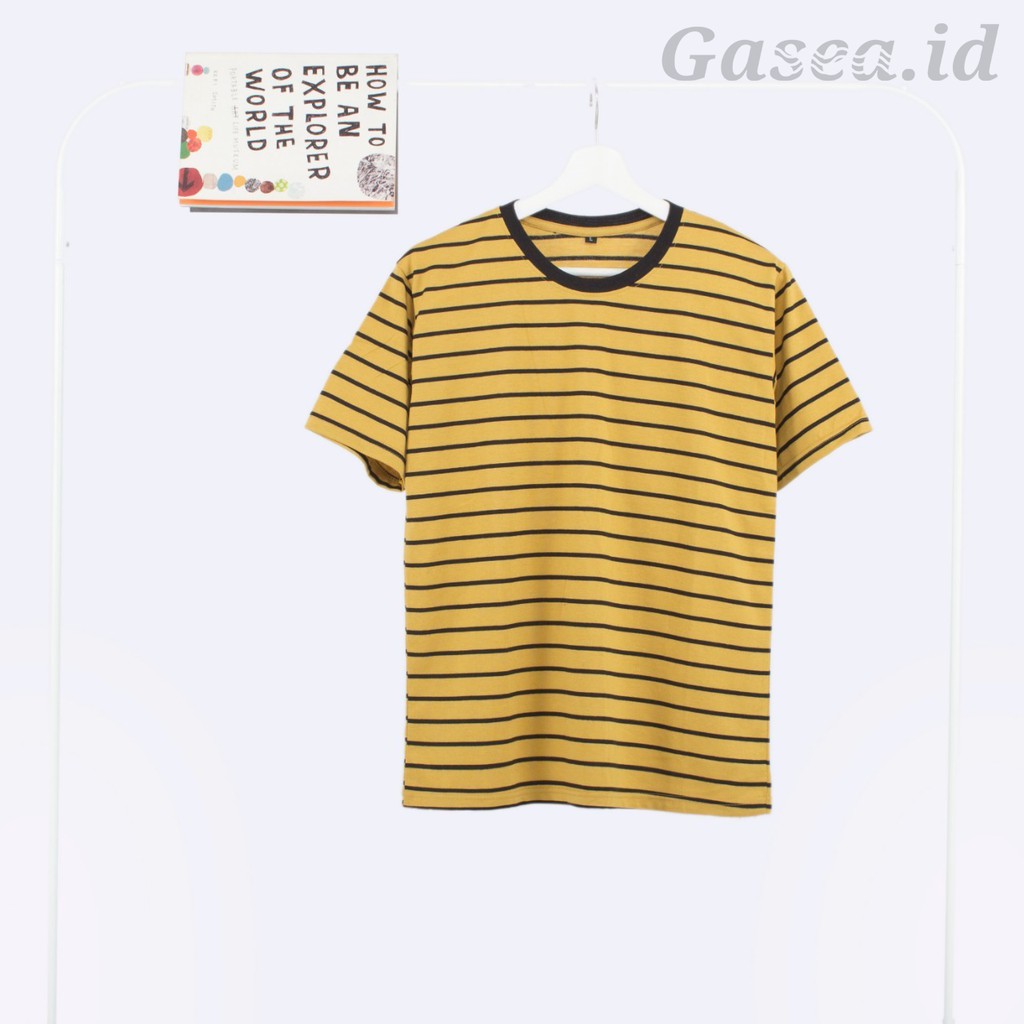 KAOS STRIPE PRIA & WANITA (UNISEX) - MUSTARD HITAM