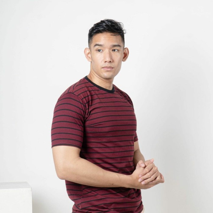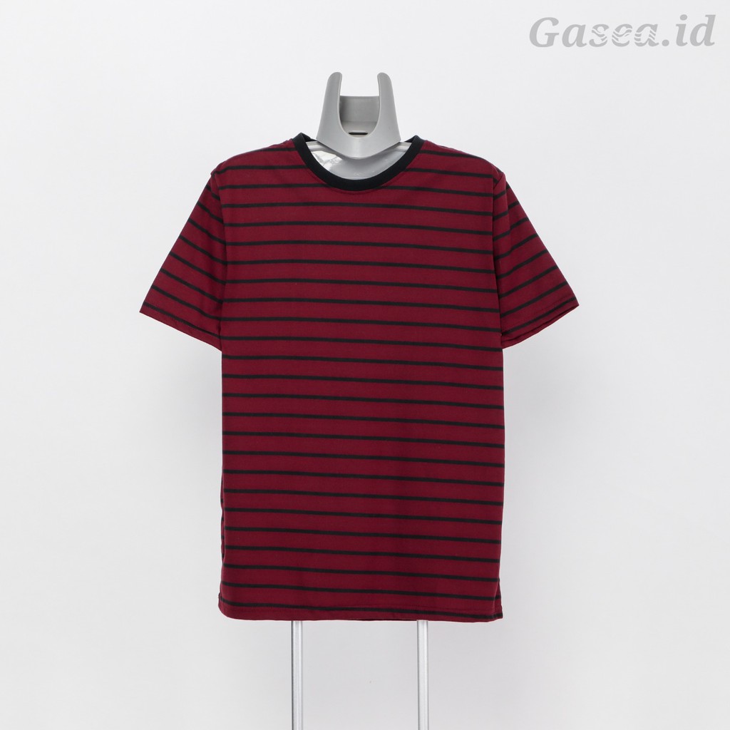 KAOS STRIPE PRIA & WANITA (UNISEX) - HITAM MAROON