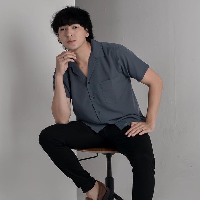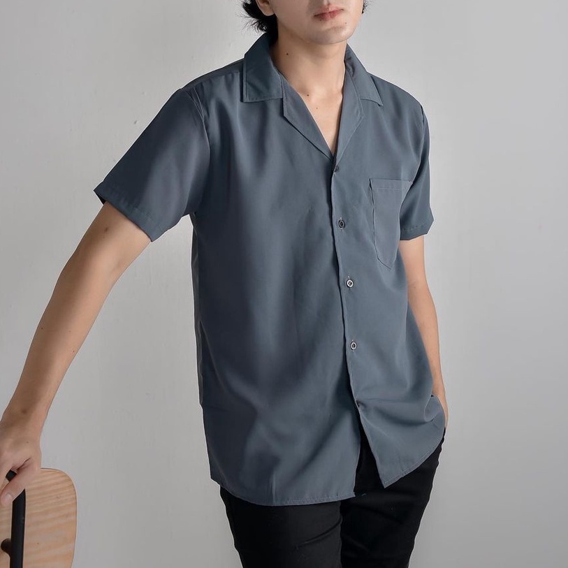 KEMEJA PRIA ABU TUA ( KEMEJA AMARINE ) - V NECK