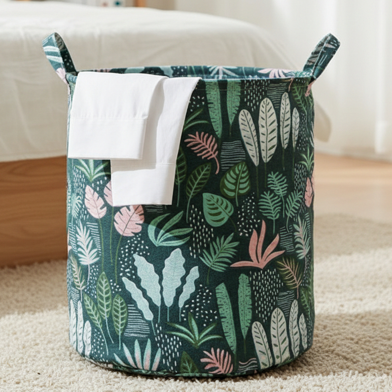 Keranjang Laundry Lipat Canvas Tempat Penyimpanan Baju Cucian Pakaian Laundry Basket Bag