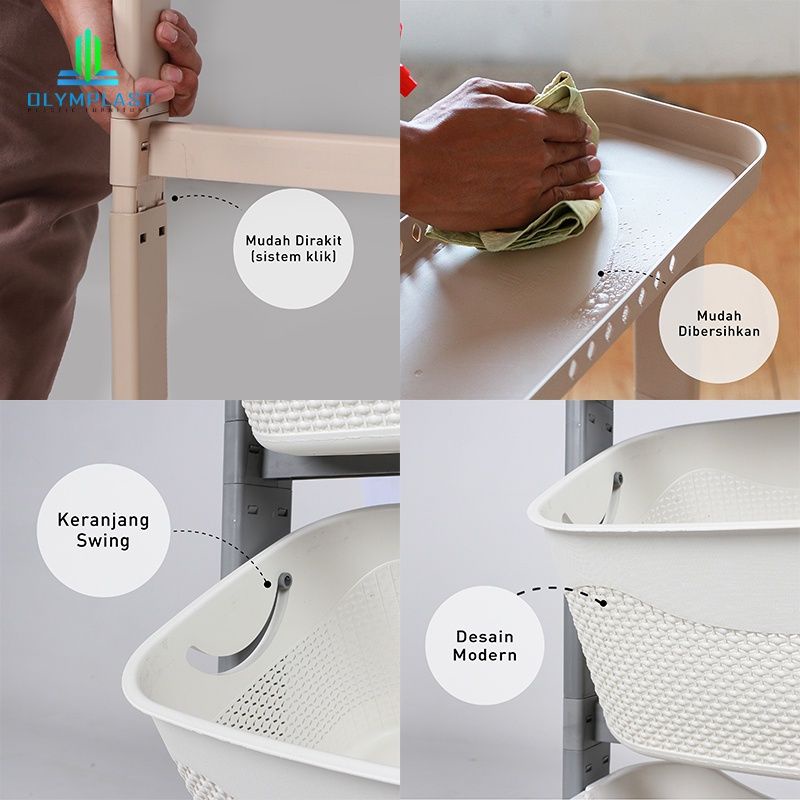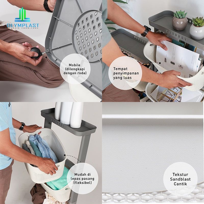 OLYMPLAST FLEXIBEL TROLLEY OFT 03 KERANJANG SERBAGUNA SUSUN 3 DENGAN RODA