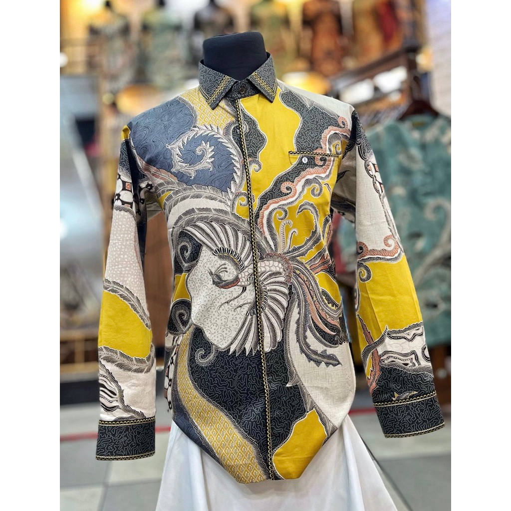 kemeja batik pria exclusive tangan panjang smock bordir / hem smock exclusive