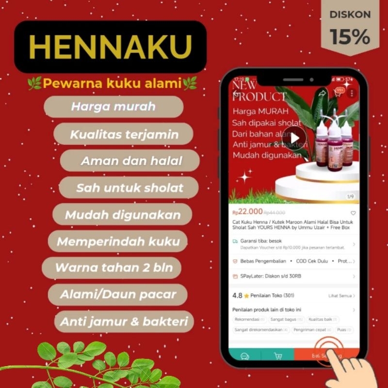 Henna Kuku Maroon "HENNAKU" [Terjamin/BPOM] Sah Untuk Sholat - Henna Alami Anti Tidak Pudar Menguning