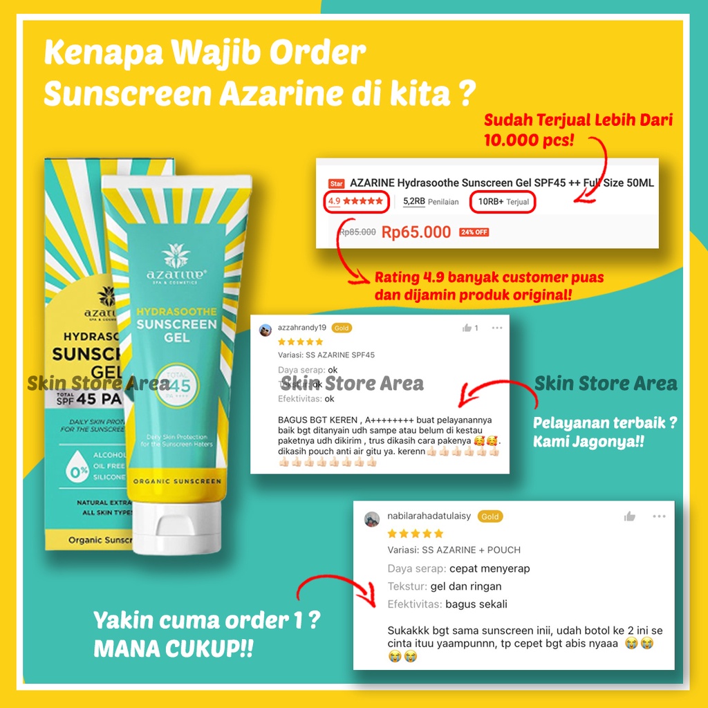 AZARINE Hydrasoothe Sunscreen Gel SPF45 ++ Full Size 50ML