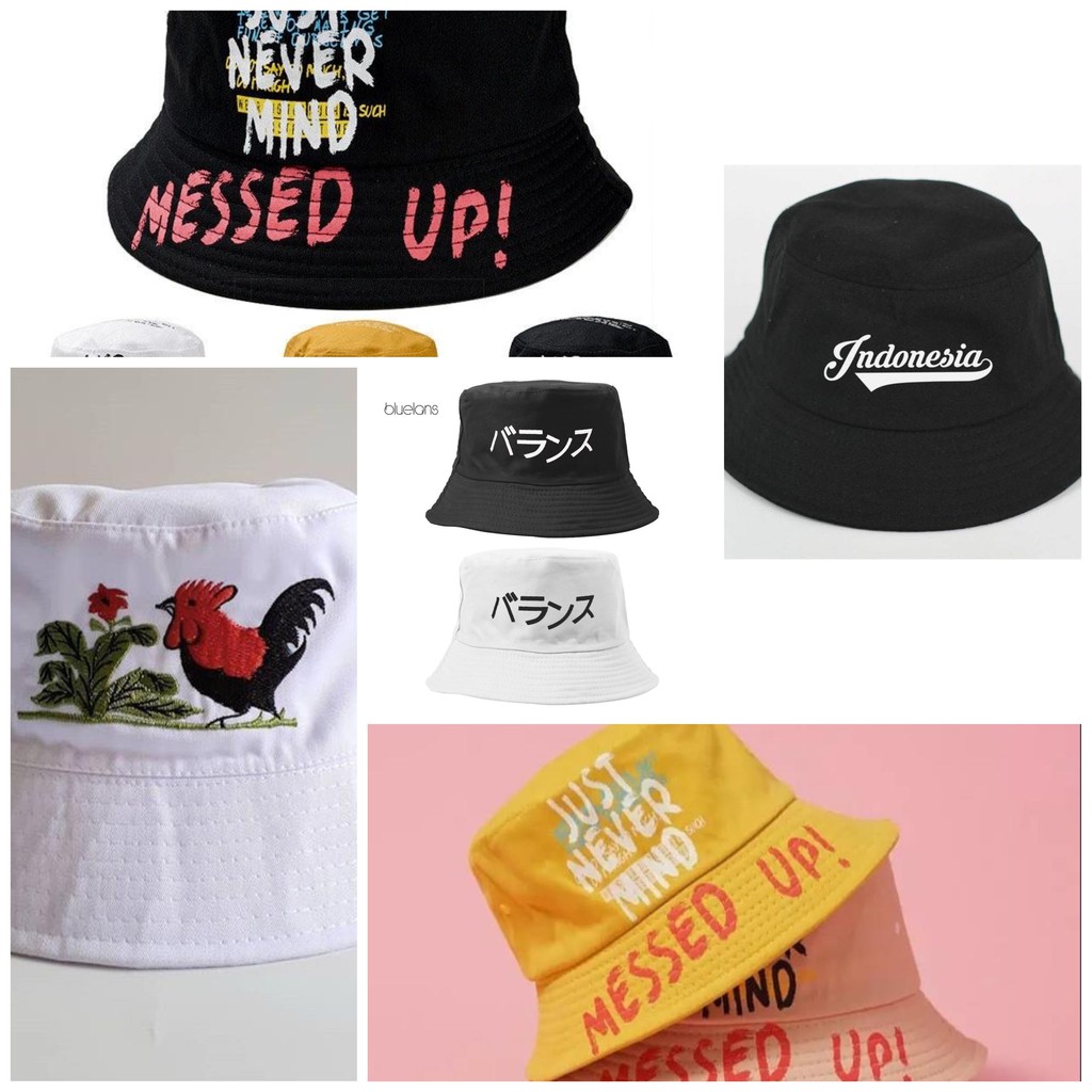 Topi bucket sablon premium bolak balikkualitas impor fisherman pantai badas wgm messed up!