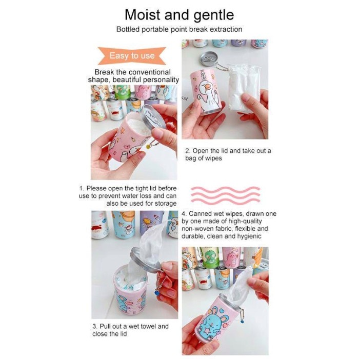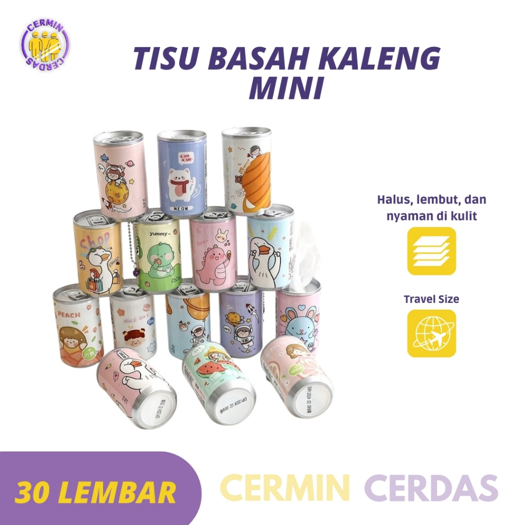 Tisu Basah Kaleng Isi 30 Lembar Karakter Cute Travel Mini Praktis Unik