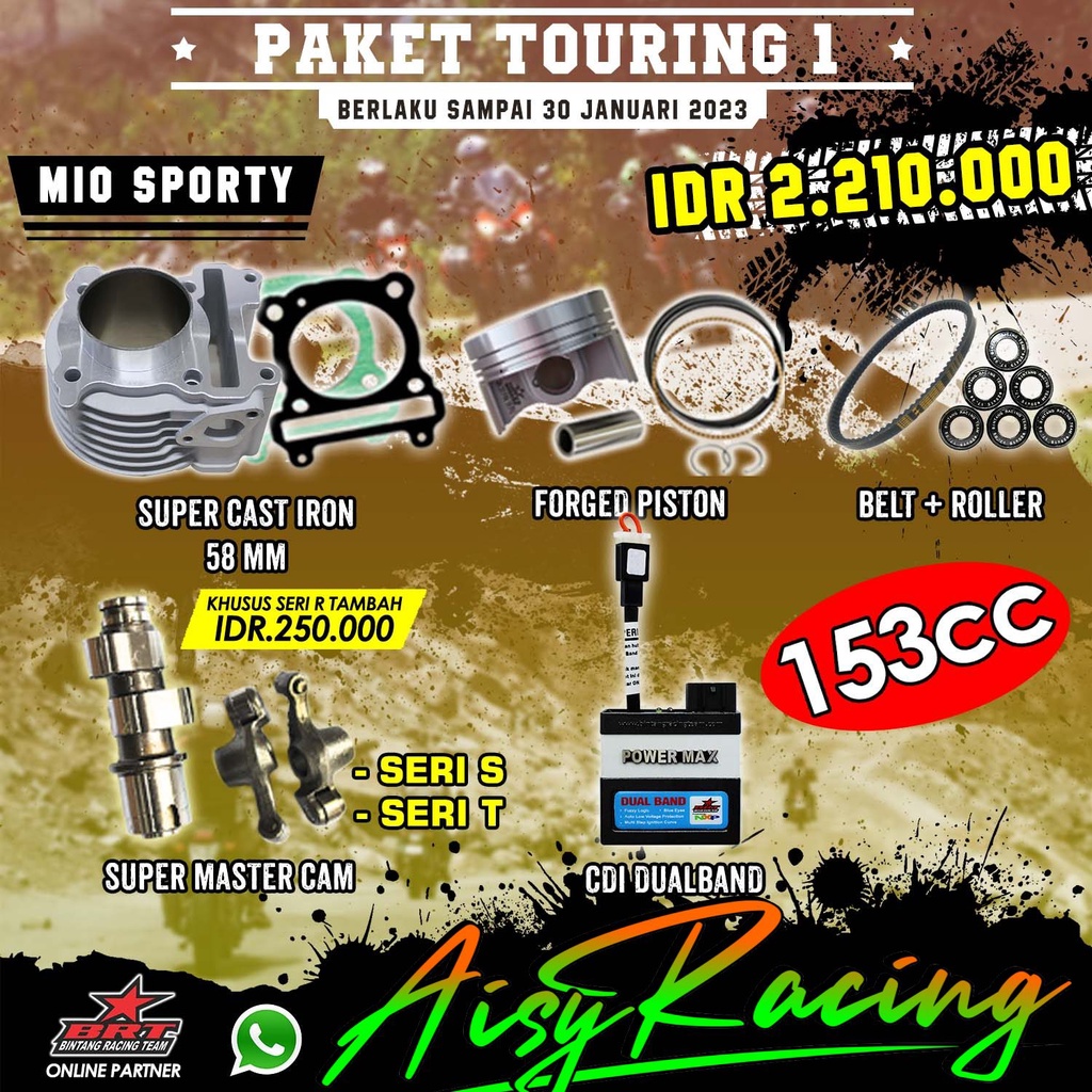 PAKET TOURING 1 PAKET BORE UP 153CC BRT BLOK 58 : 00 MIO SPORTY MIO SMILE / OLD