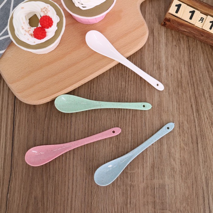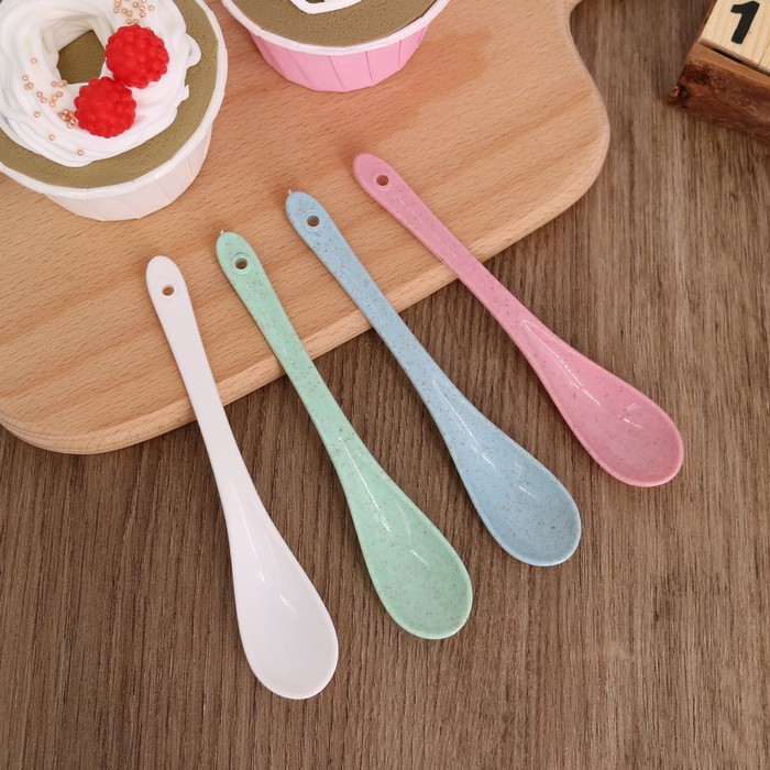 Sendok Minum / Es Krim Anak Kecil Motif Plastik Warna Keramik (12cm)