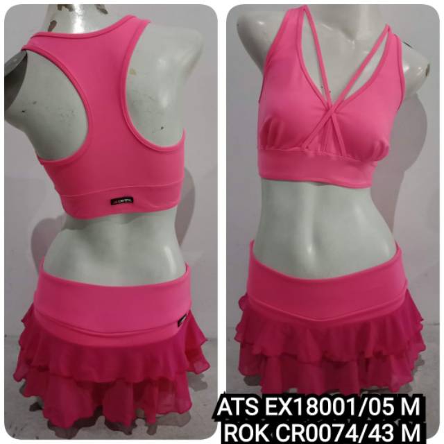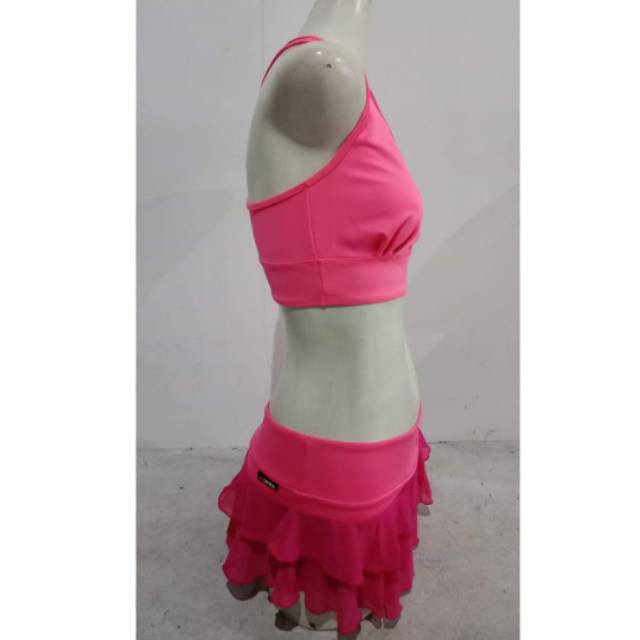 Senam Crystal Pink Setelan Rok Zumba Aerobic Fitness CR07443 ( Live )