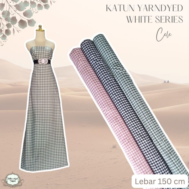 Bahan Kain Katun Yarndyed White Series Cele kain cotton cele kotak halus lembut murah