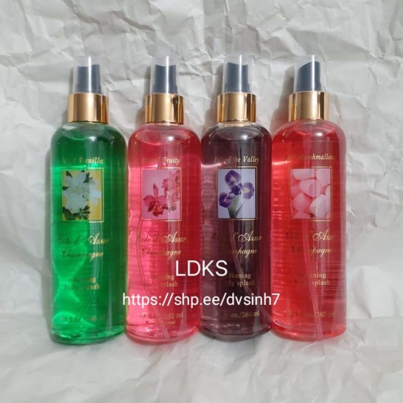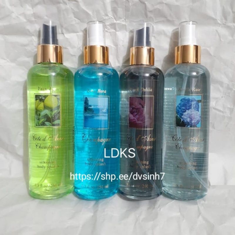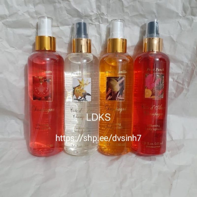 Cham'pagne Silkening Body Splash / Body Mist 250ml - Floral Fruity / Sweet Vanilla / Wild Ginger / Baby Love / Tropical Coffee - New Variant Available