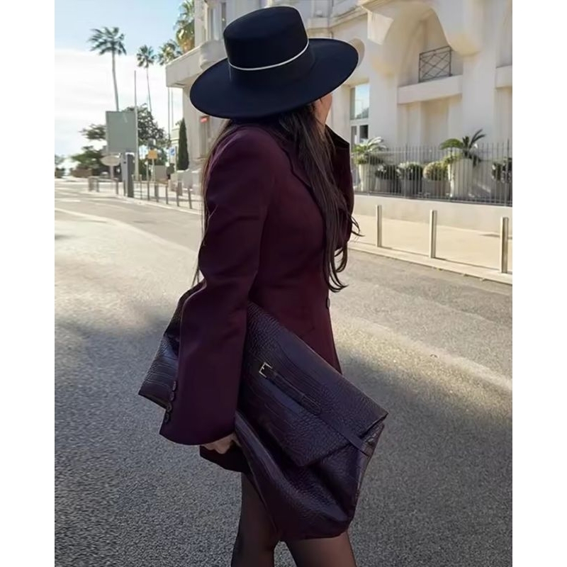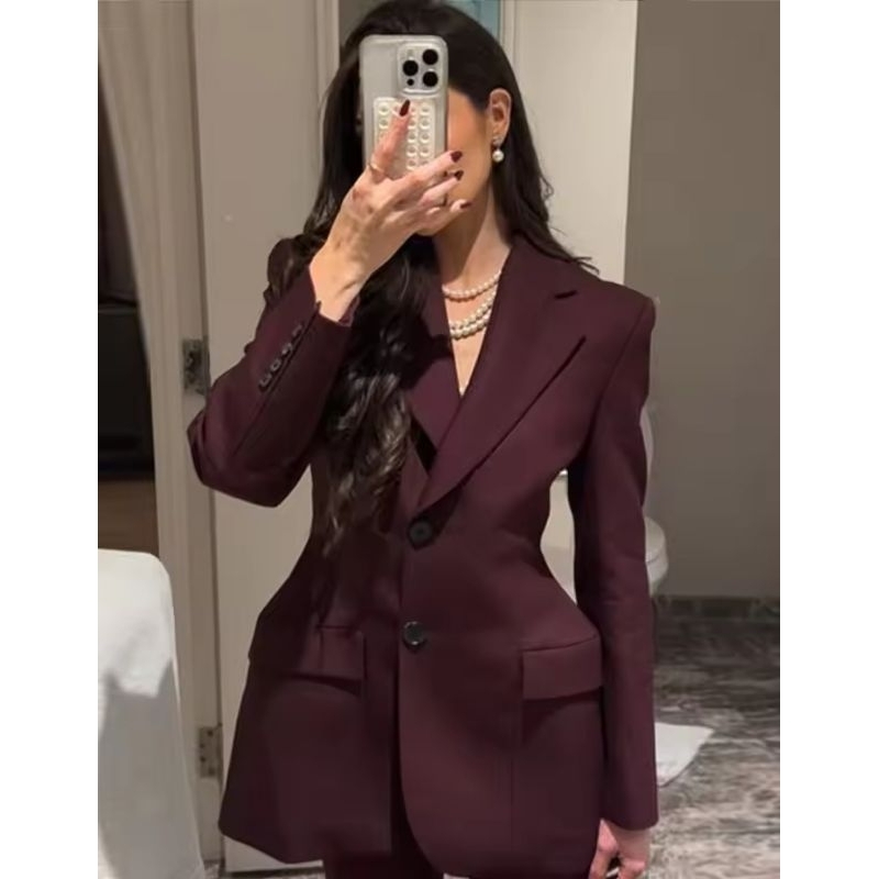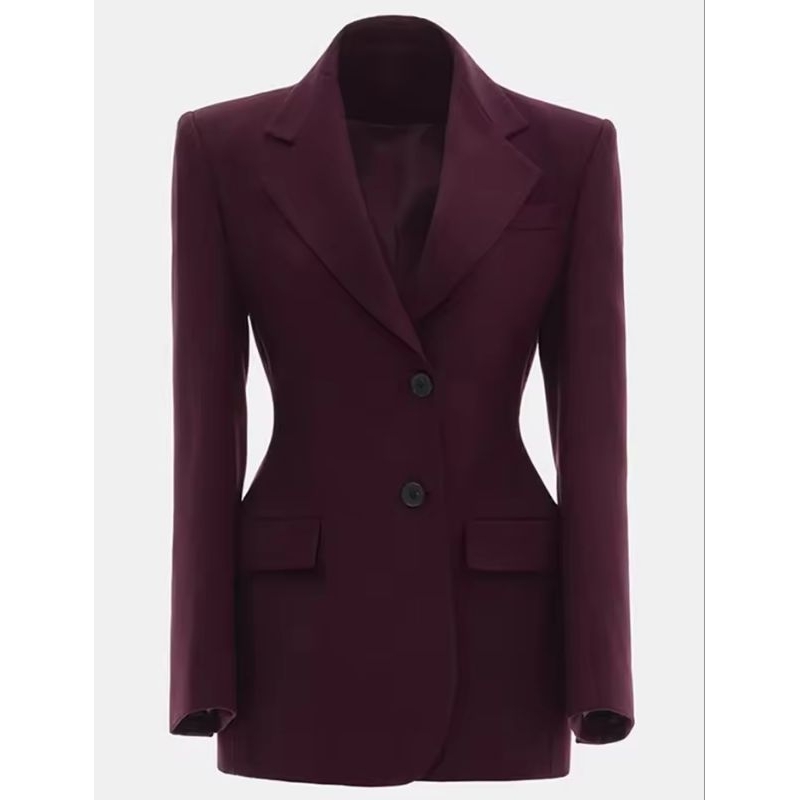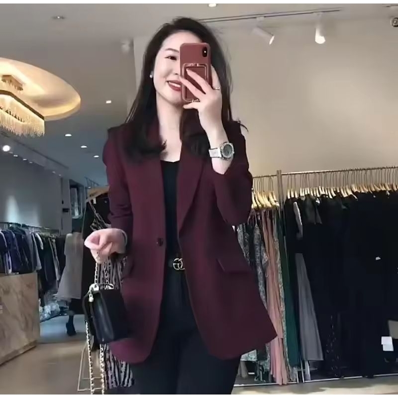 Jas Blazer Wanita Formal Burgundy Lengan Panjang