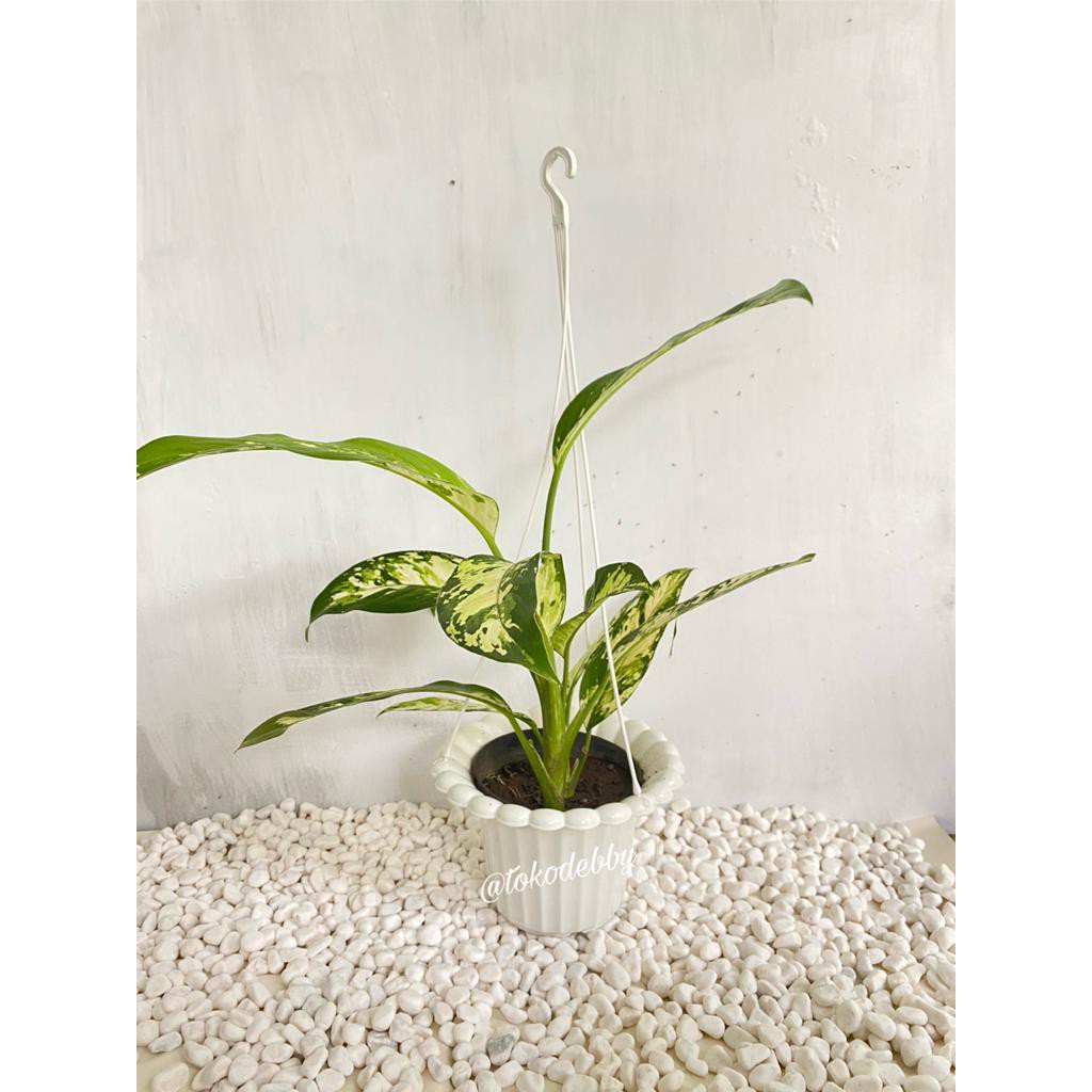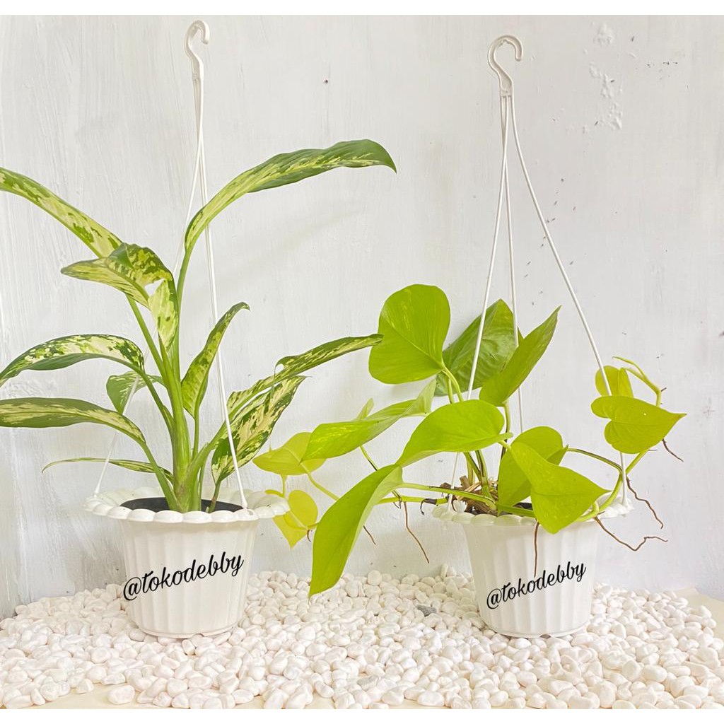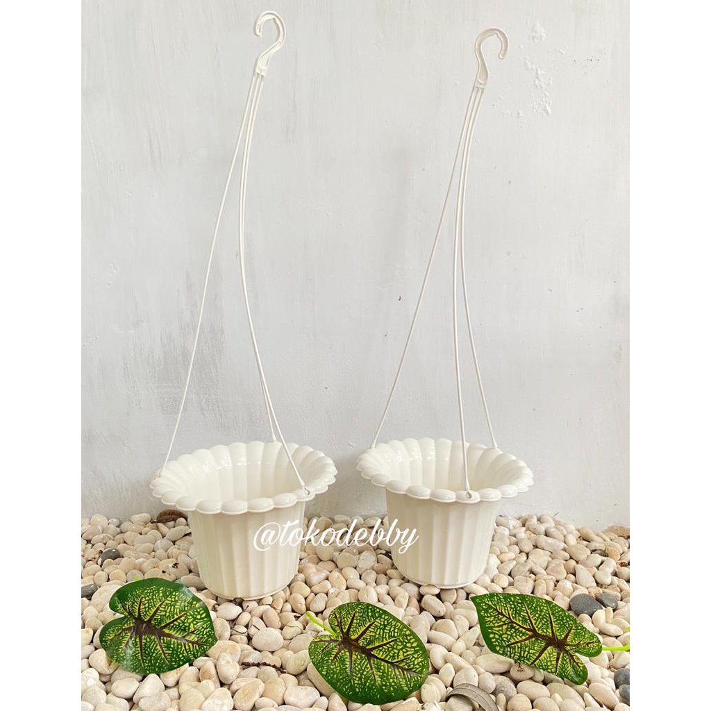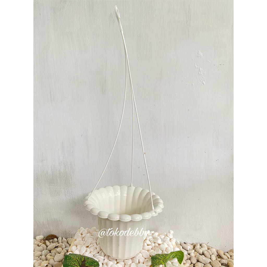 Pot Tanaman dan Bunga Plastik Gantung Mawar Putih