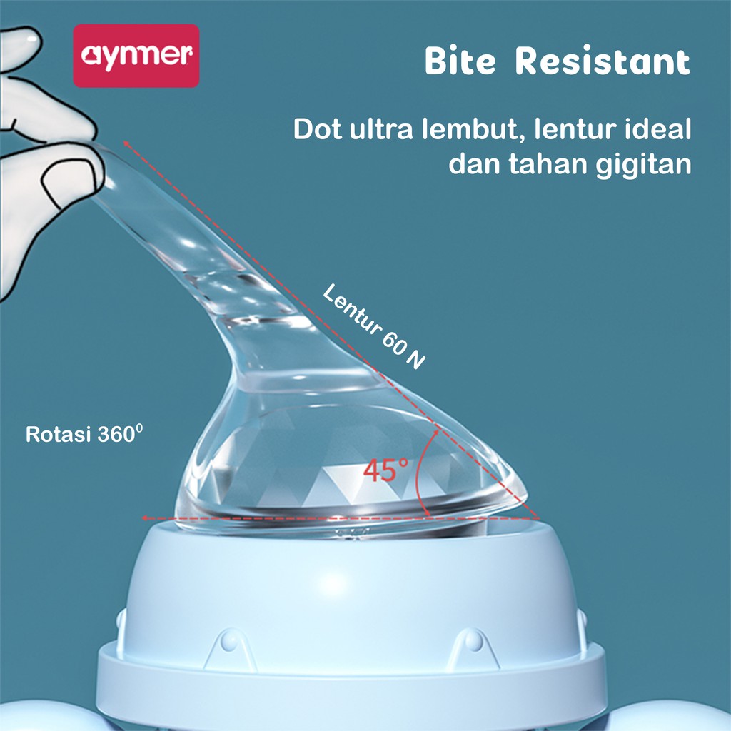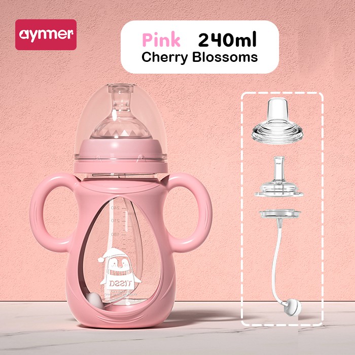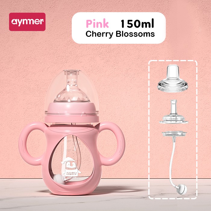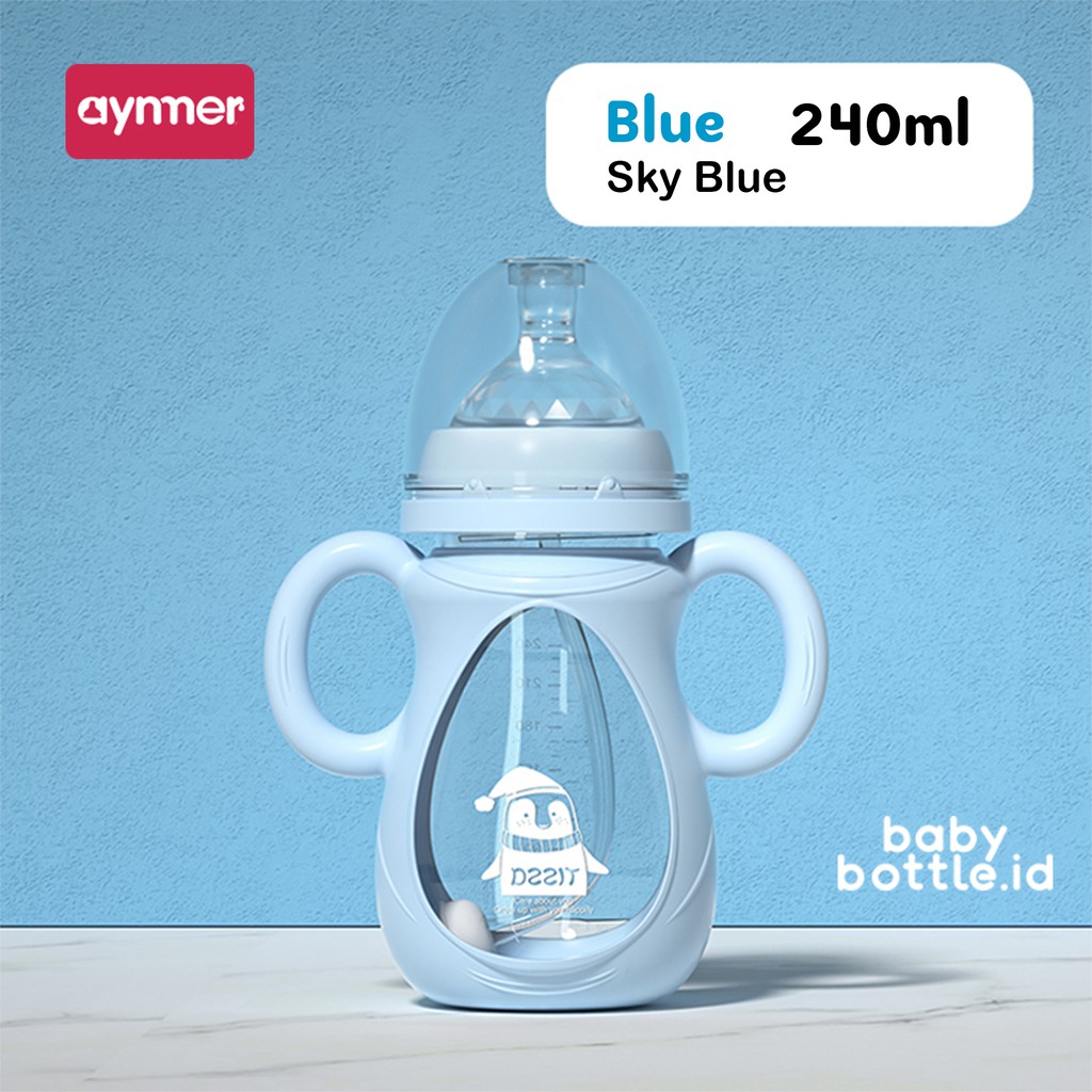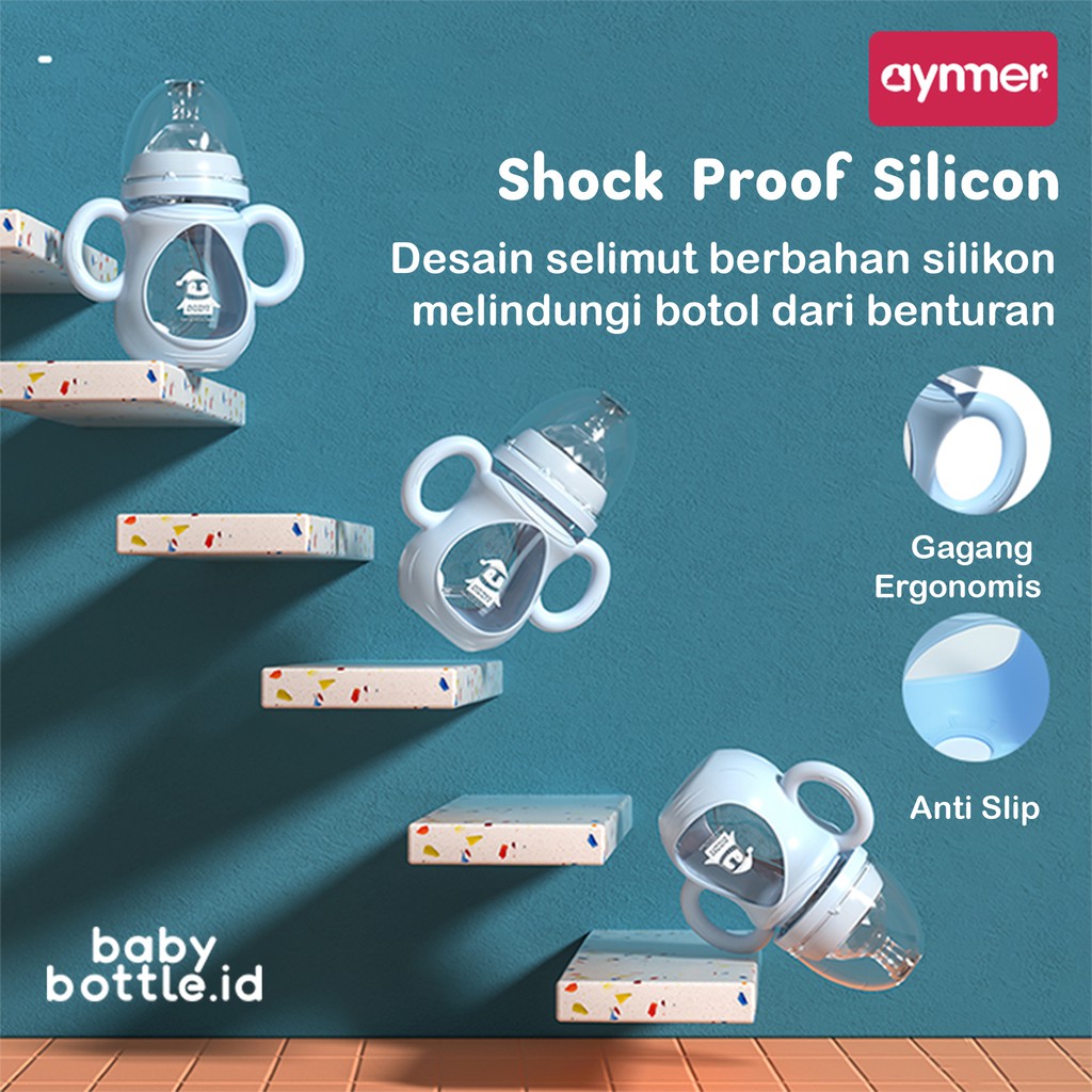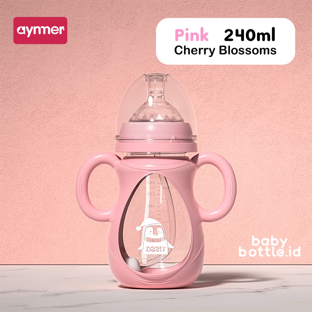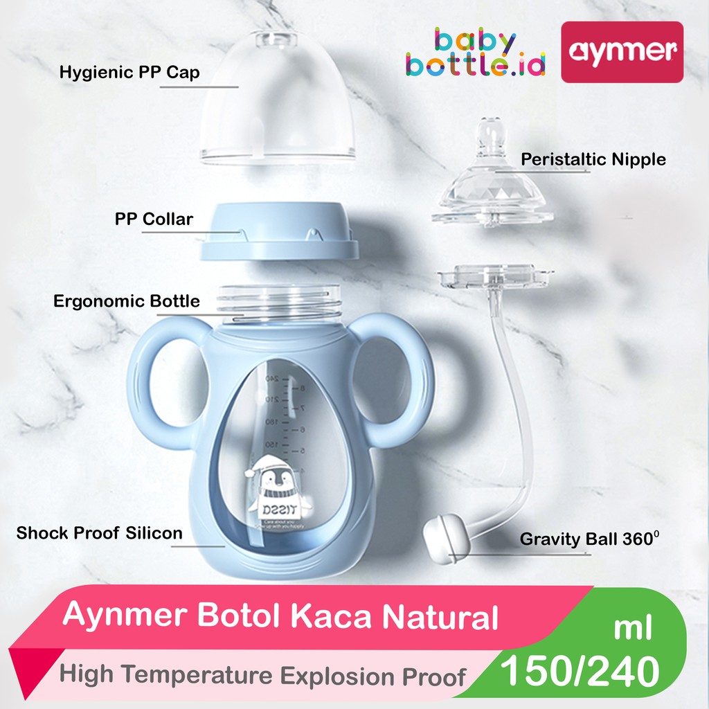 AYNMER BOTOL SUSU BAYI KACA NATURAL | Wide Neck Peristaltic Nipple | Anti Kolik 150 ml & 240 ml