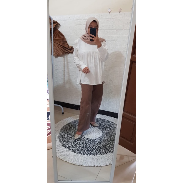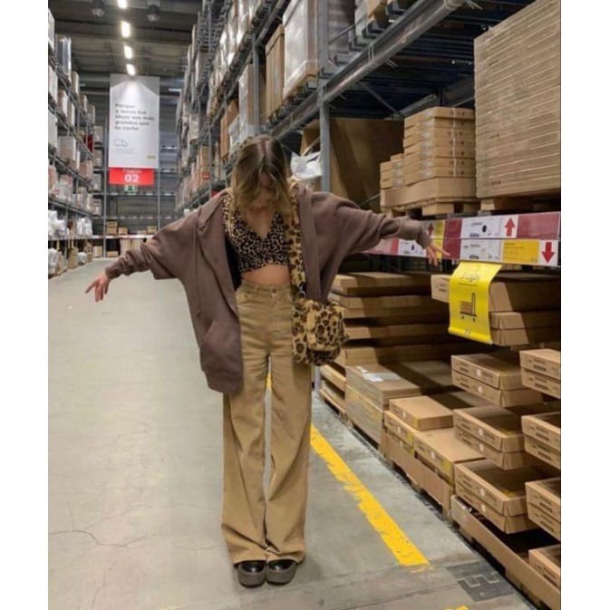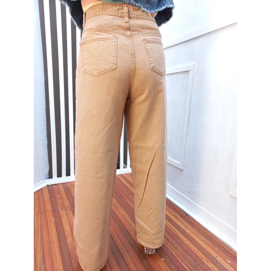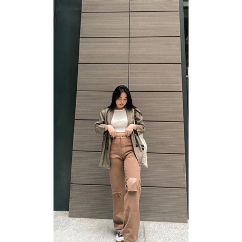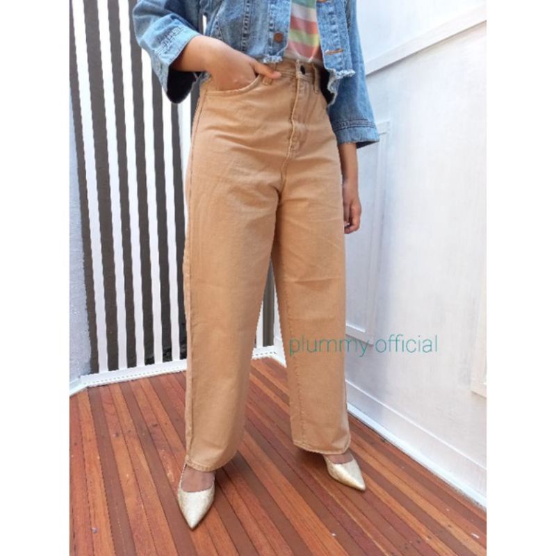 Celana Kulot Jeans Wanita Loose Sobek Lutut Warna Choco Cream Khaki Latte Fahsion