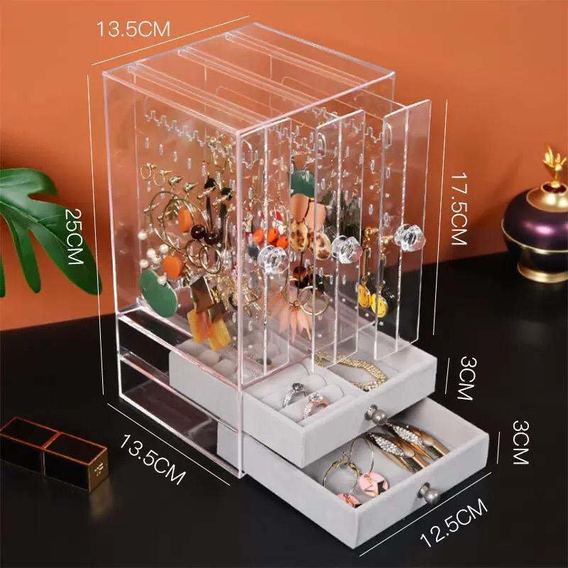 Rak Acrylic Penyimpanan Anting / Kalung / Jam Tangan / Cincin / Rak Anting 3 Pintu + 2 Laci Anti Debu TOP770