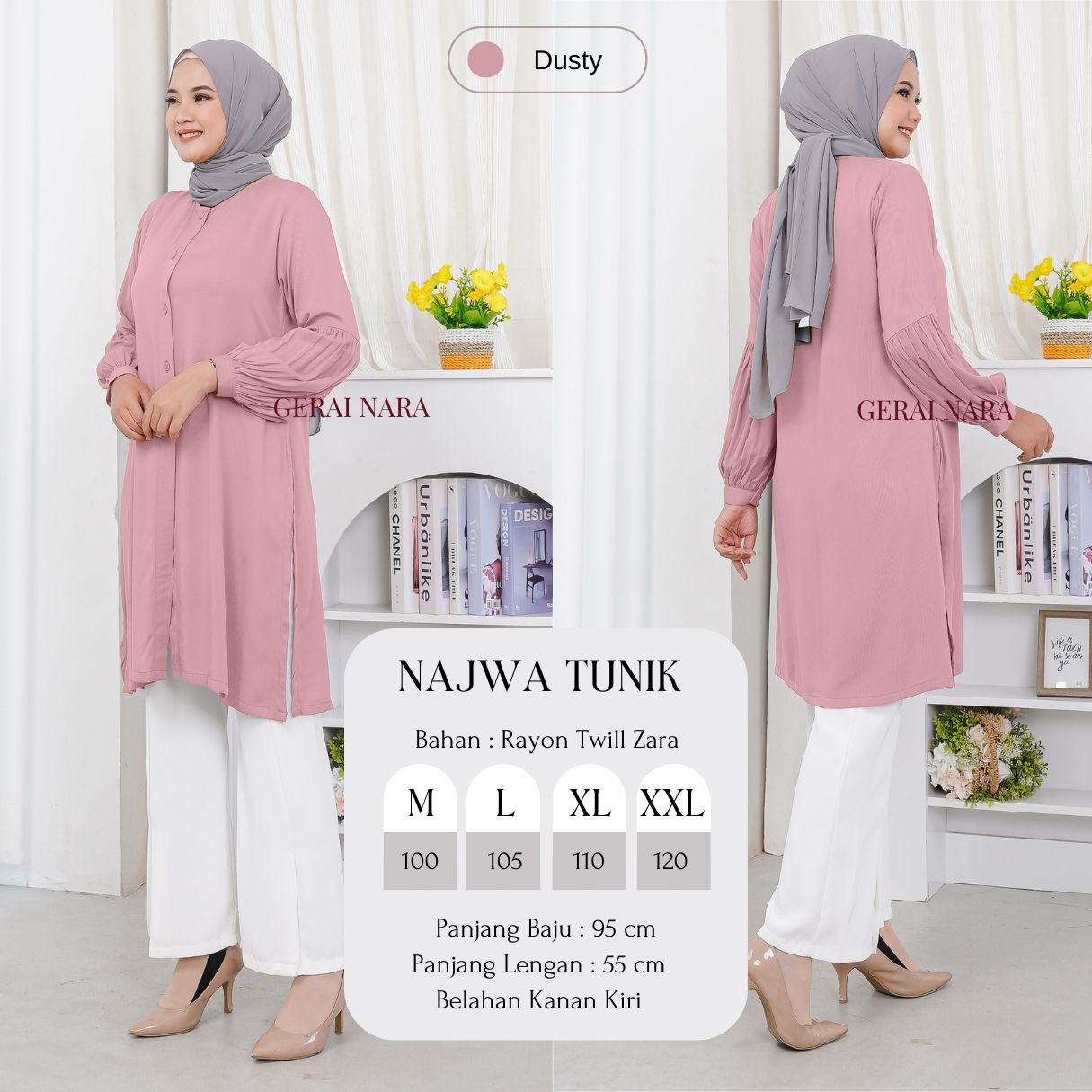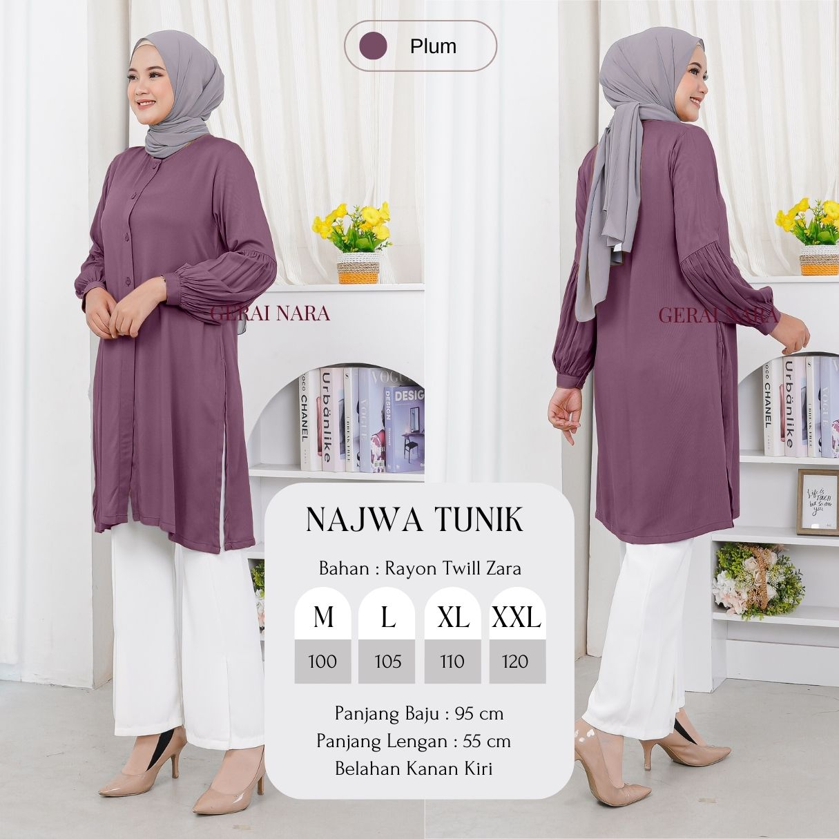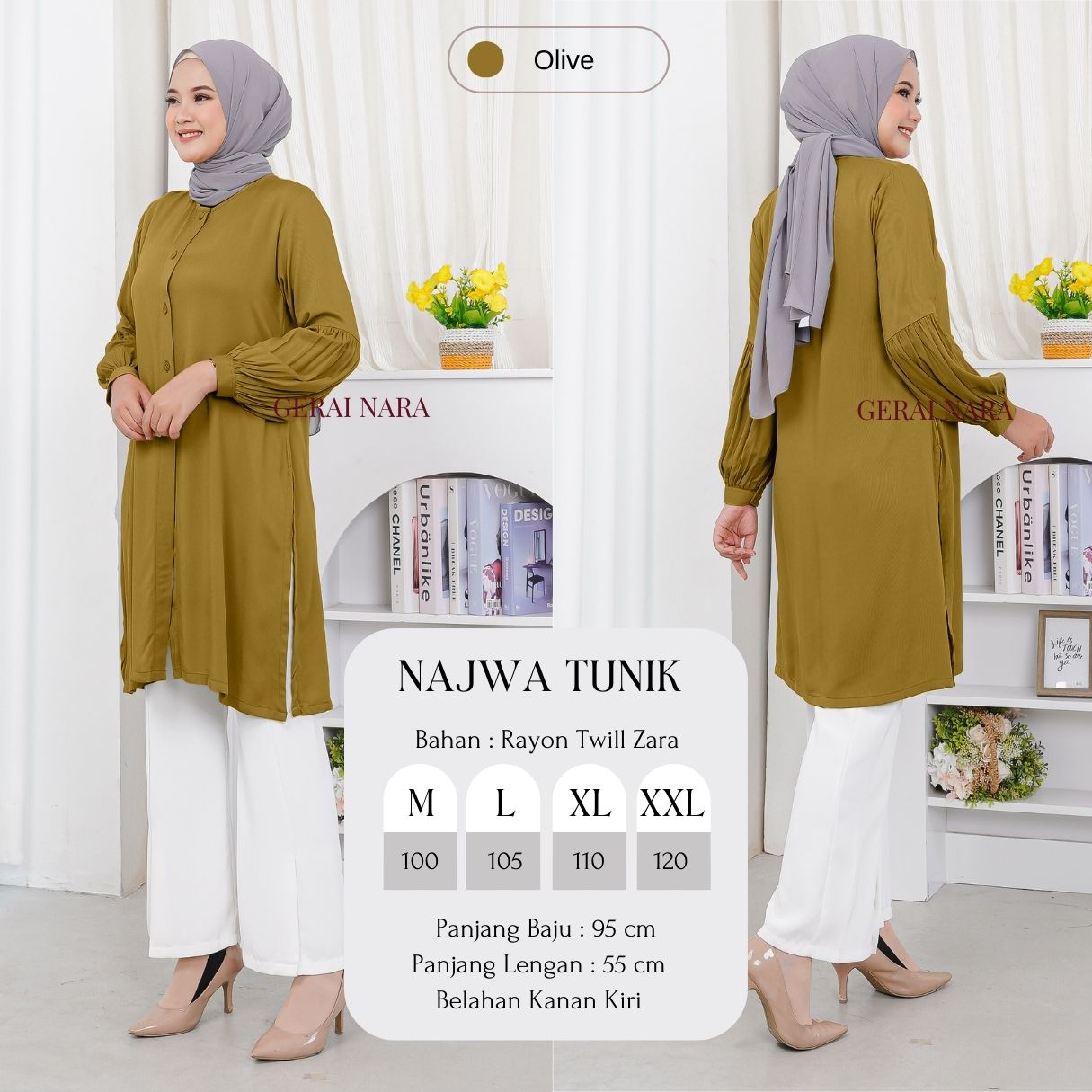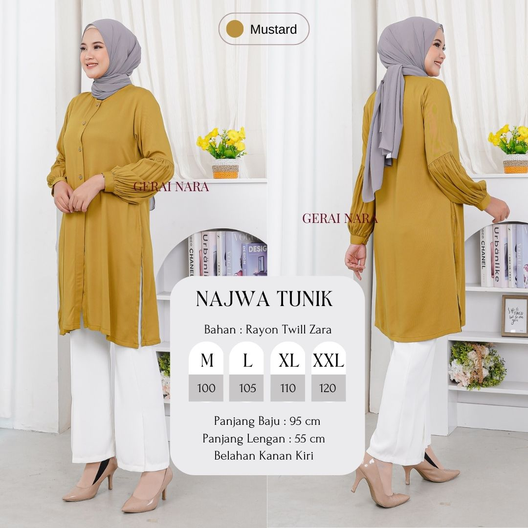 Baju Najwa Tunik Polos Tunik Rayon Twill Premium Lengan Balon Gerai Nara