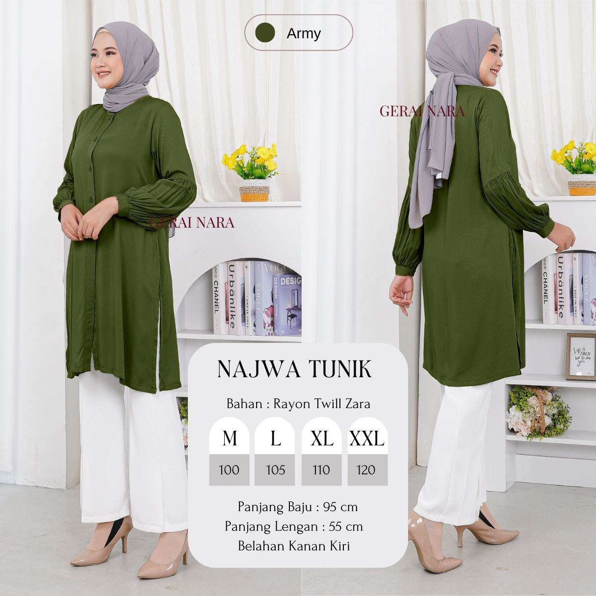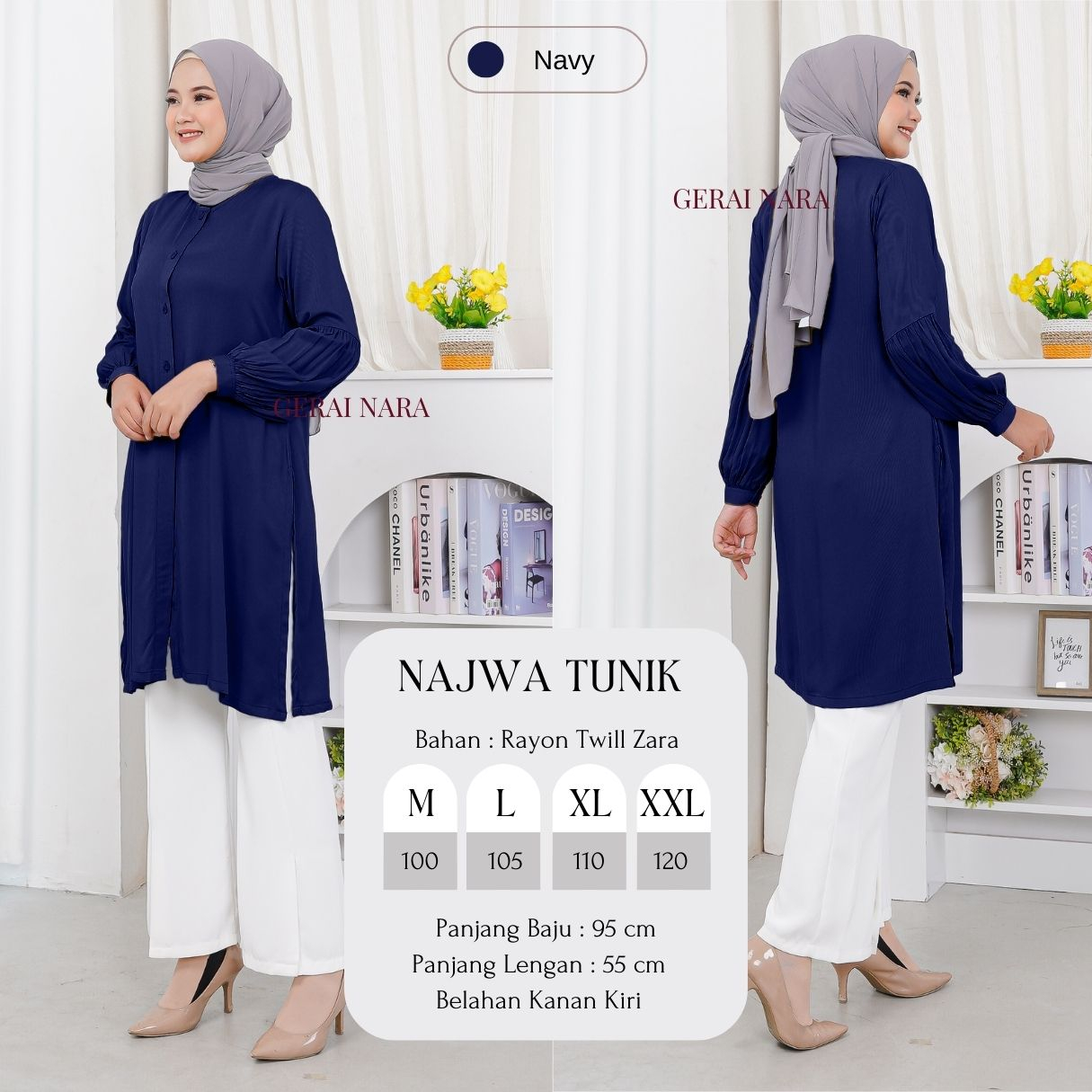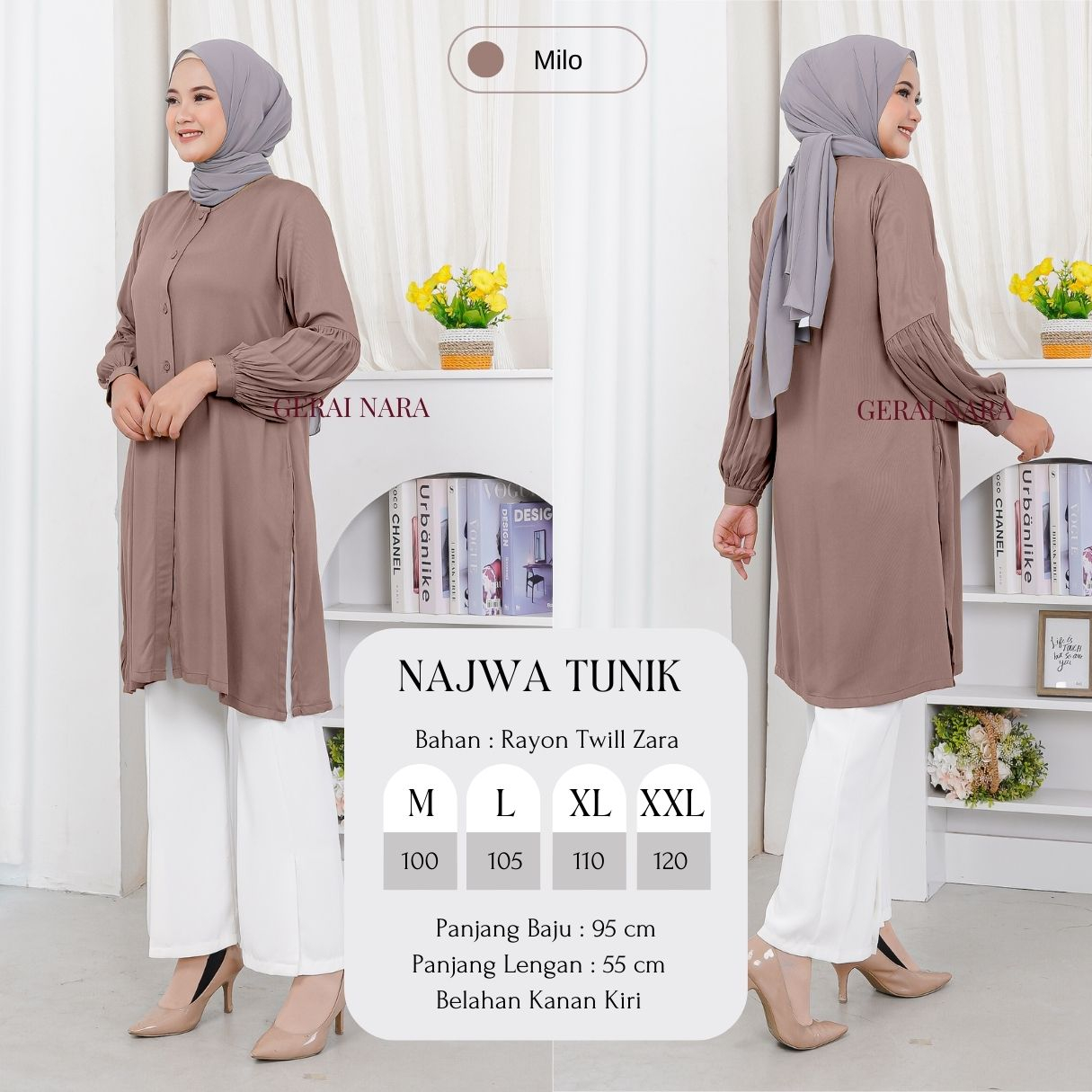 Baju Najwa Tunik Polos Tunik Rayon Twill Premium Lengan Balon Gerai Nara