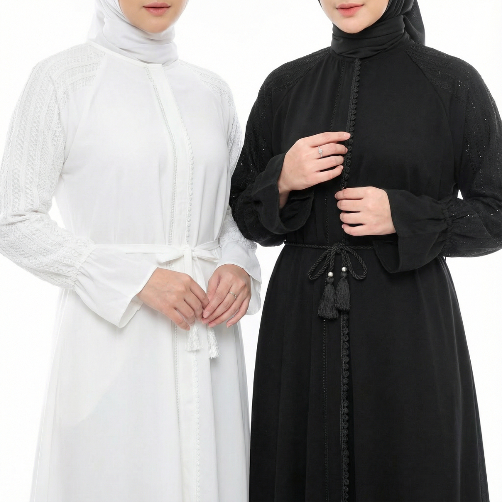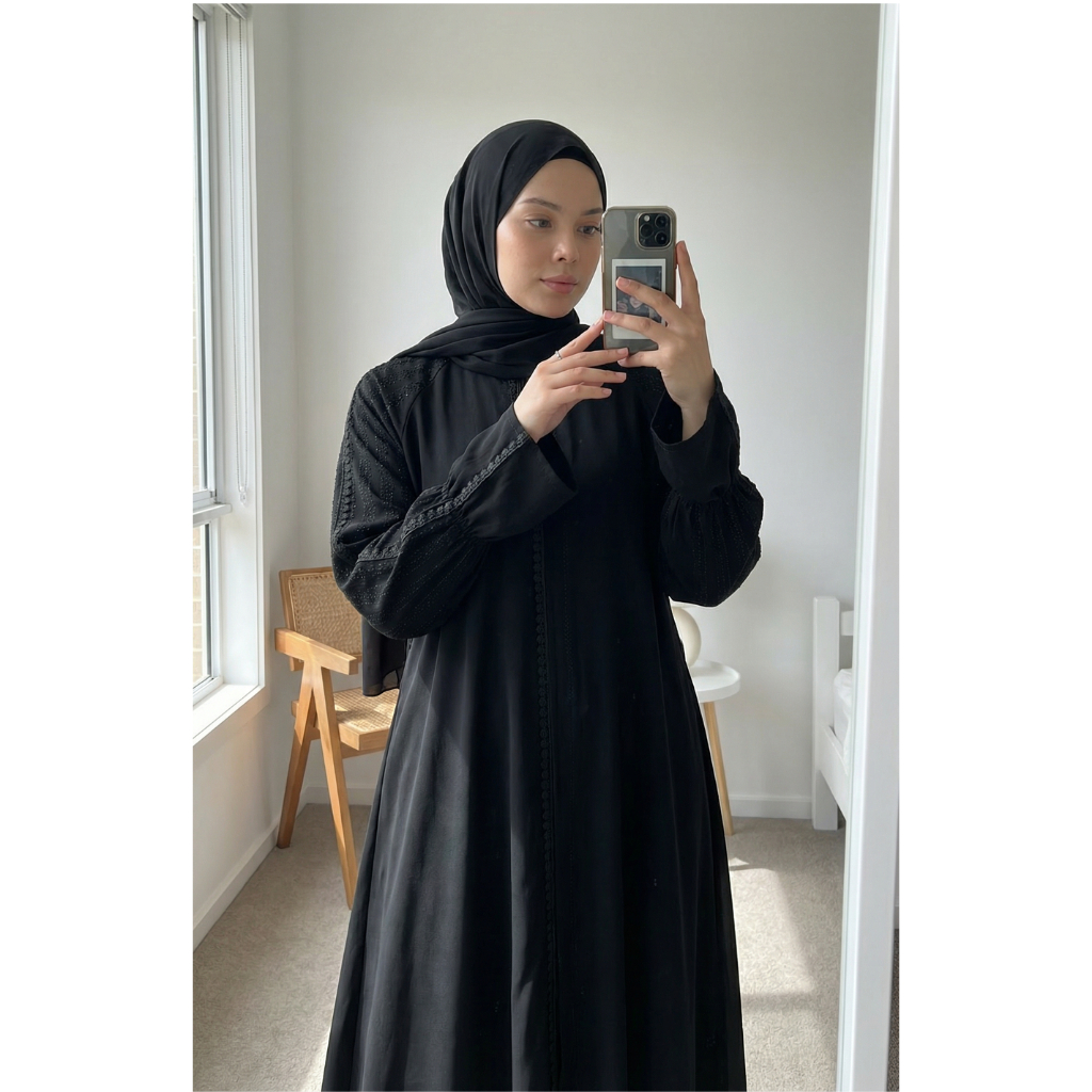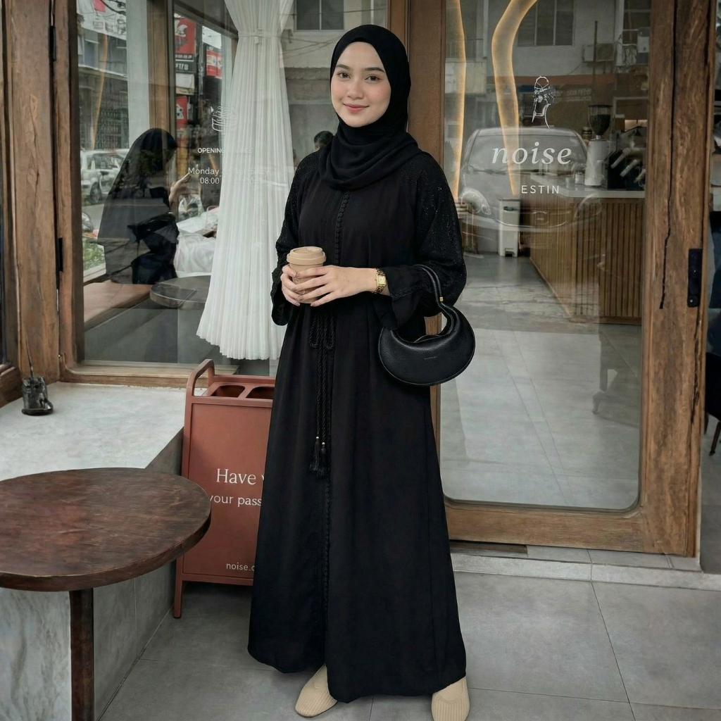 Abaya Gamis Hitam Premium Busui Lengan Karet Jatuh Adem Mayung Jetblack Bonus Sabuk Terbatas NC 511