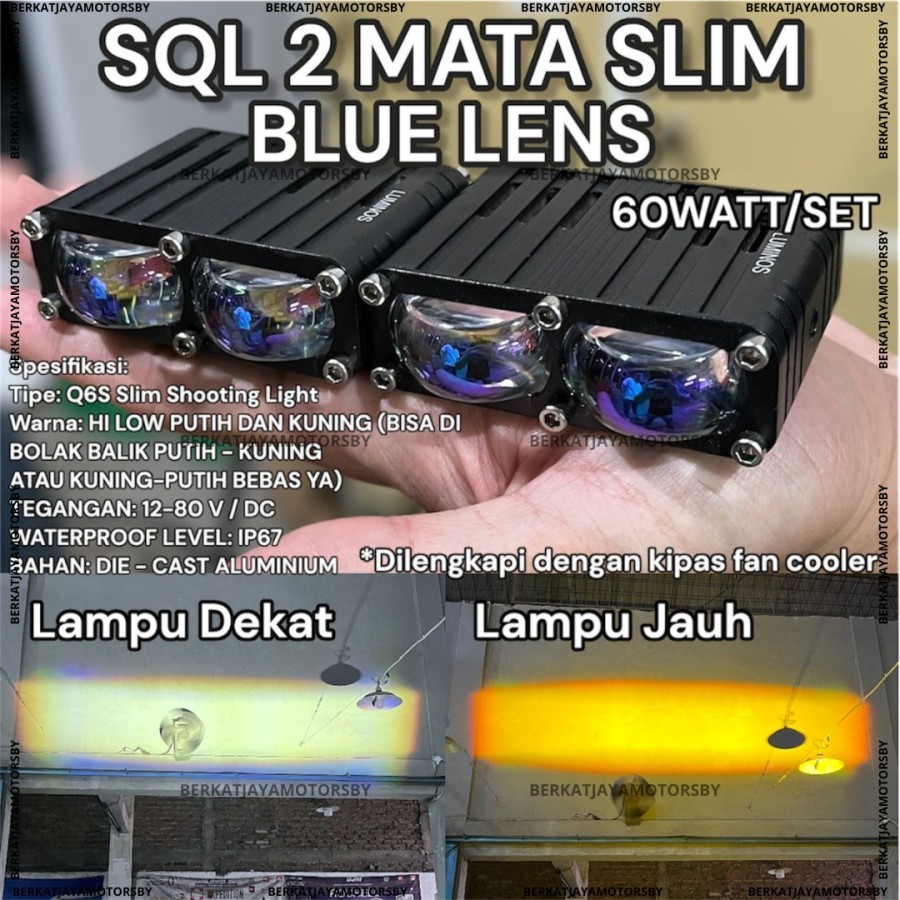 LUMINOS LAMPU TEMBAK SOROT SQL 2 MATA Q6 Q6S BLUE LENS 2 WARNA WHITE YELLOW LASER MINI PROJECTOR 2 MATA MINI PROJIE