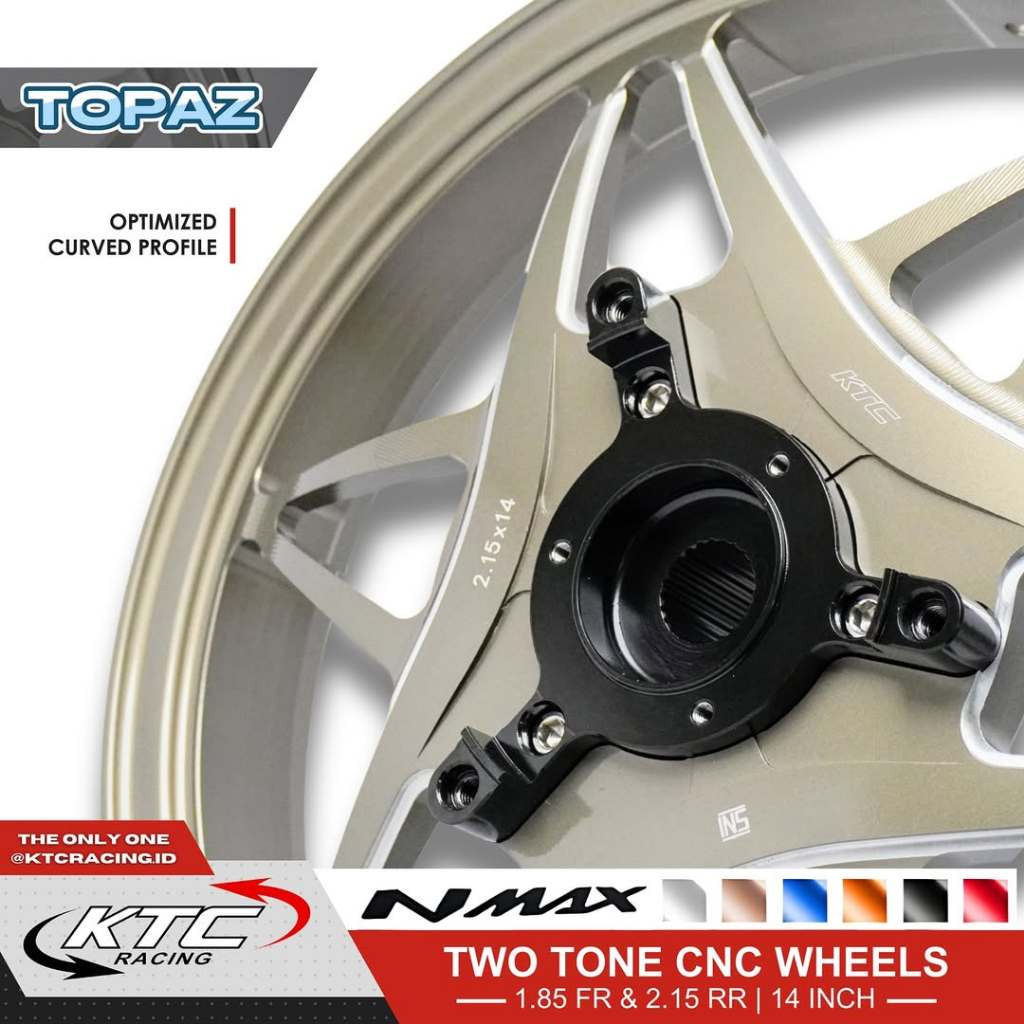 VELG KTC RACING TOPAZ RING 14 NMAX OLD NMAX NEW NMAX TURBO AEROX OLD AEROX NEW TWO TONE COLOR CNC UK 1.85x14 /2.15x14 KTC ORIGINAL TOPAS