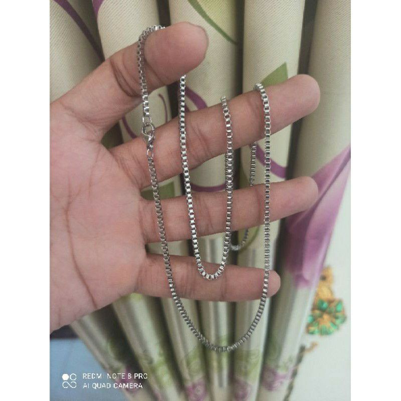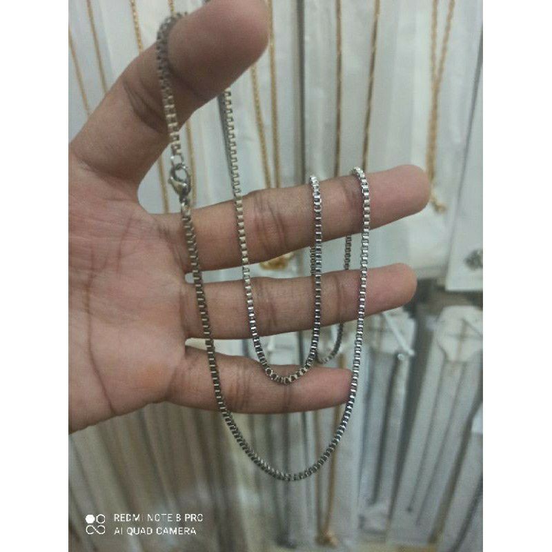 kalung Titanium Rantai Kotak Milano Anti karat 45 - 50cm untuk Cewek Cowok dan Pria Keren