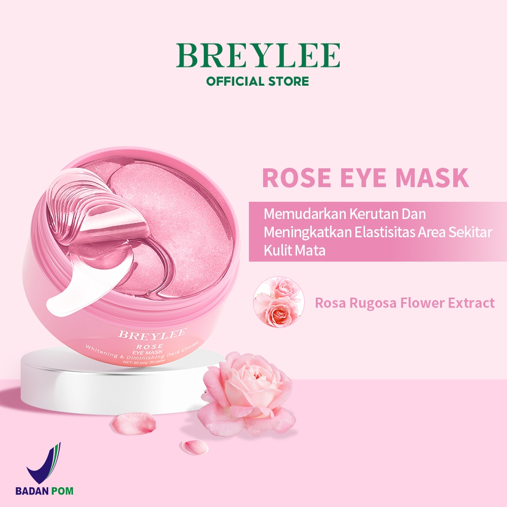 BREYLEE Exp: 05/08/2026 Rose Eye Mask - Masker mata Refreshing, Menyegarkan, Melembabkan, Area Sekitar Mata Anti-Kerut Anti-Aging Remove Dark Circles Kantung Mata Mengurangi Kerutan Halus (60 Pcs/30 Pairs)