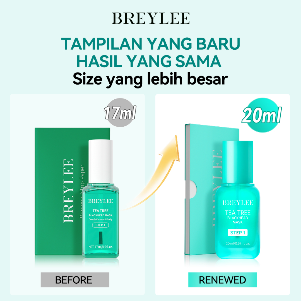 Newly Upgraded BREYLEE Tea Tree Blackhead Mask & Pore Minimizer Serum(20ml+20ml) - Masker Komedo Angkat Komedo, Pembersih Pori-pori, Mengontrol Minyak Berlebih, Wajah Skincare