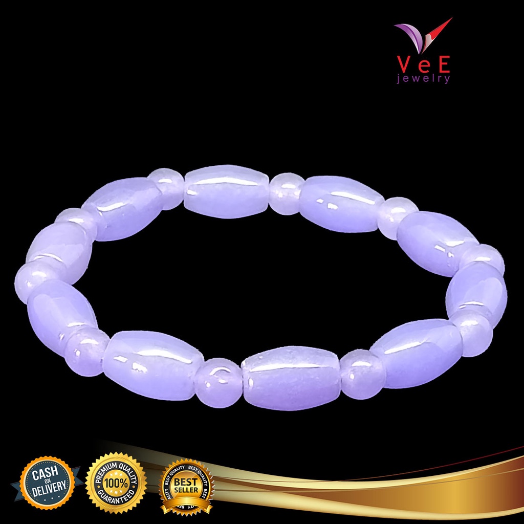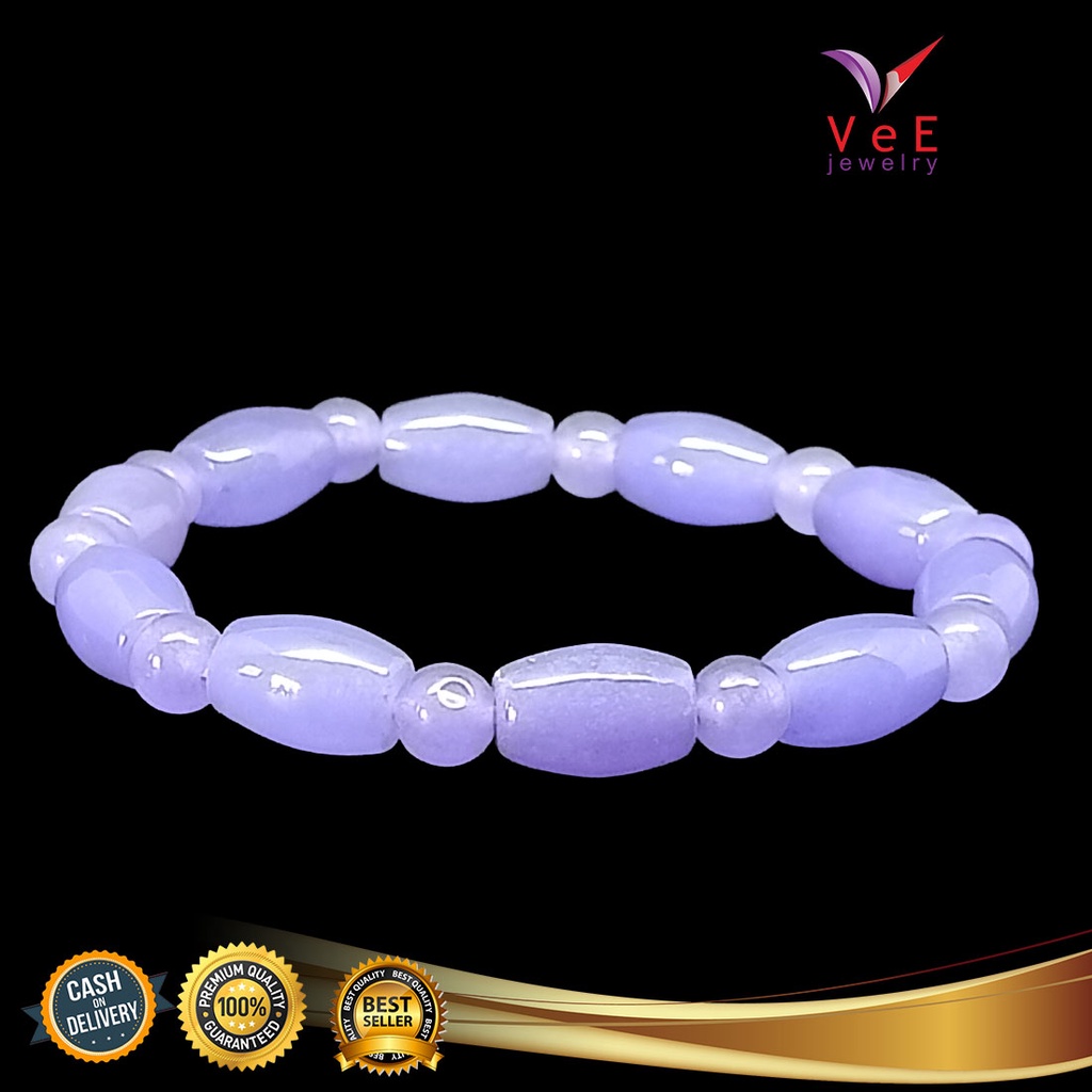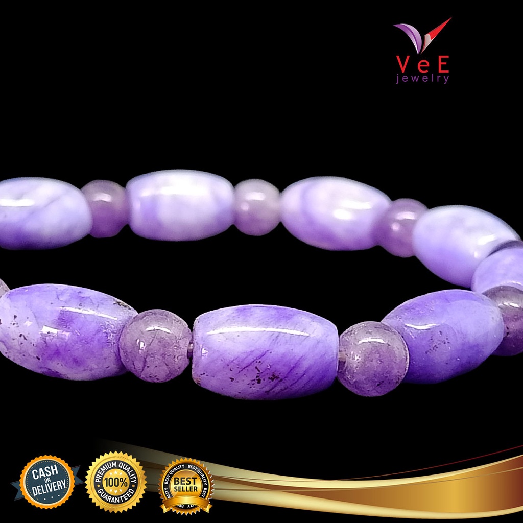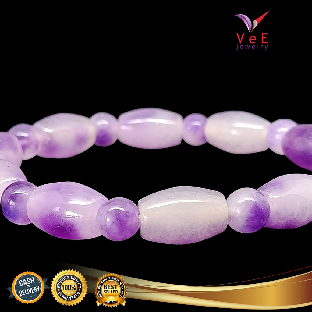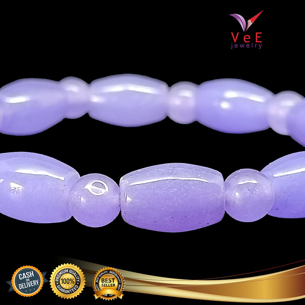 Gelang Batu Giok Cina Asli Ungu Tabung - Vee Bracelet Pria Wanita Terapi Kesehatan
