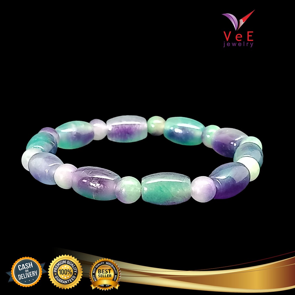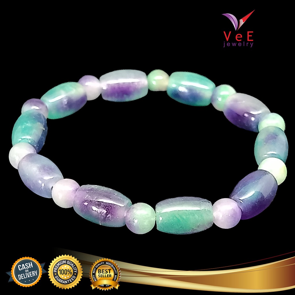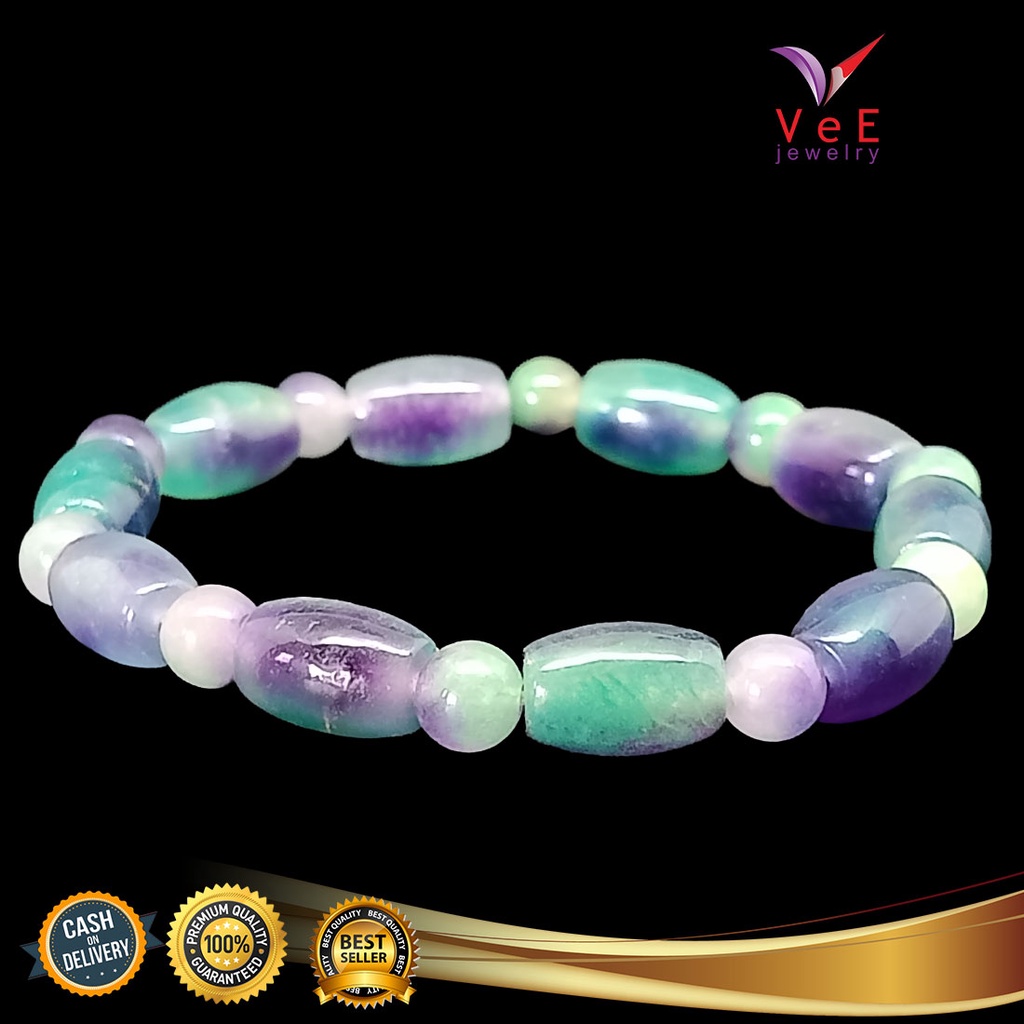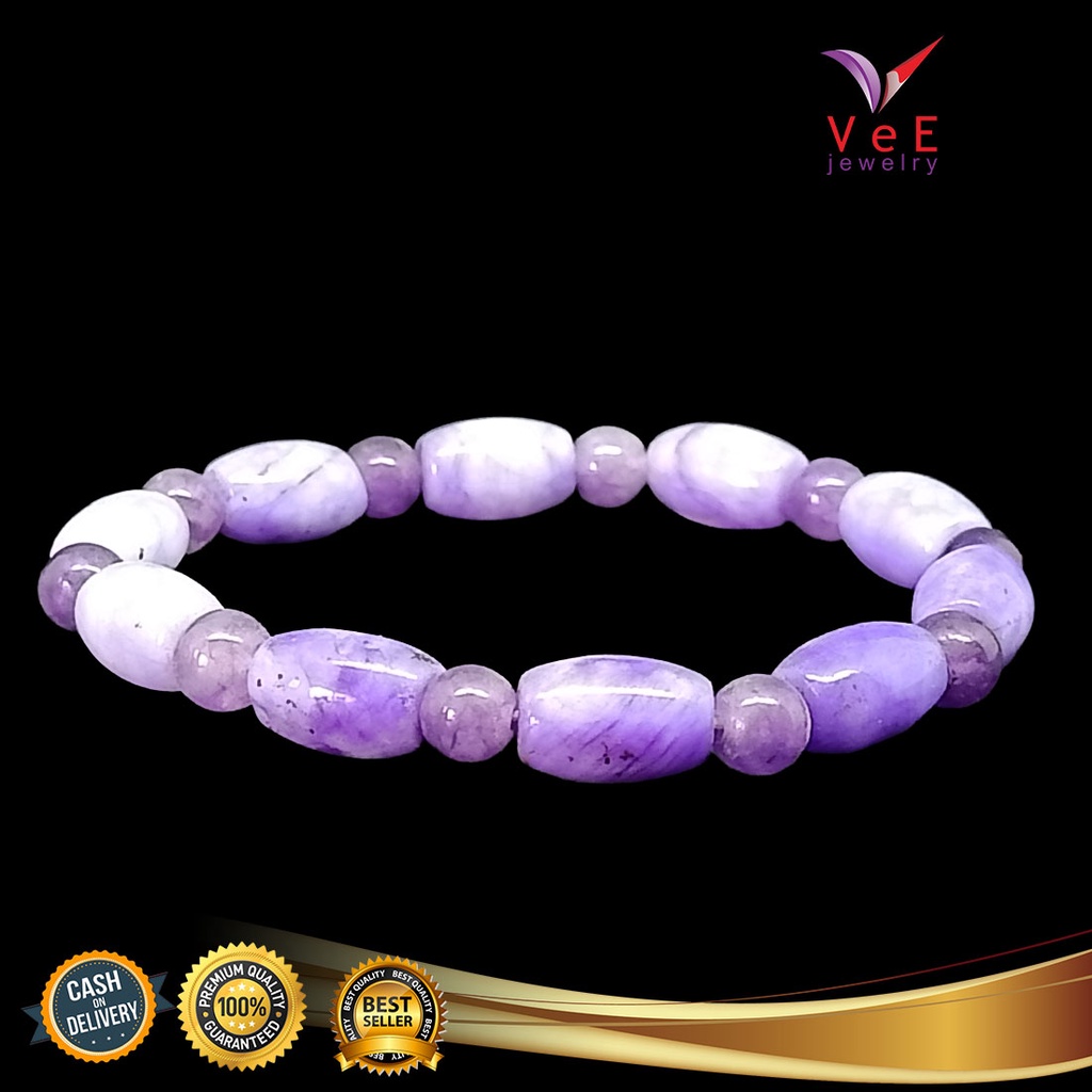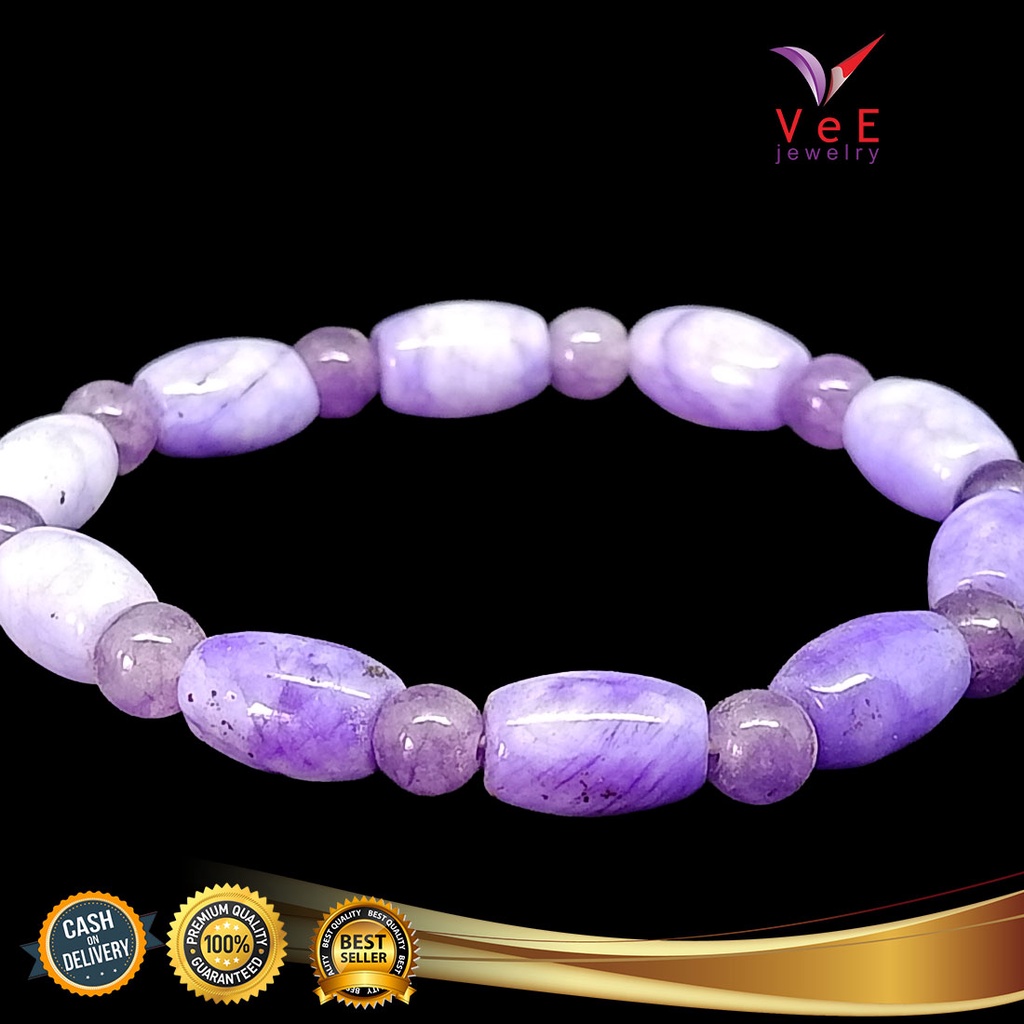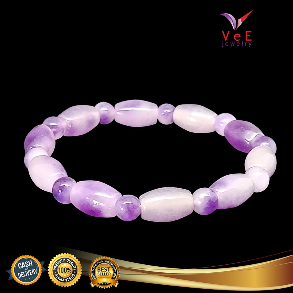 Gelang Batu Giok Cina Asli Ungu Tabung - Vee Bracelet Pria Wanita Terapi Kesehatan