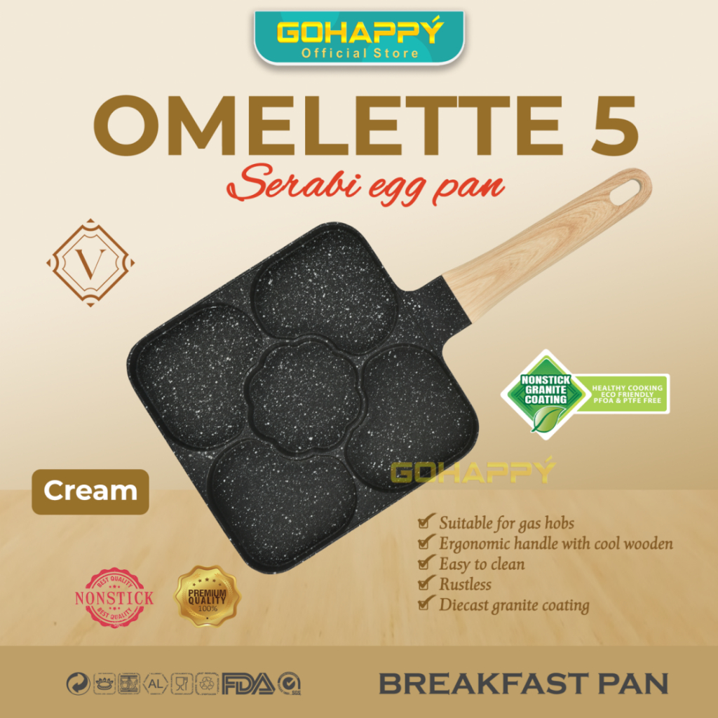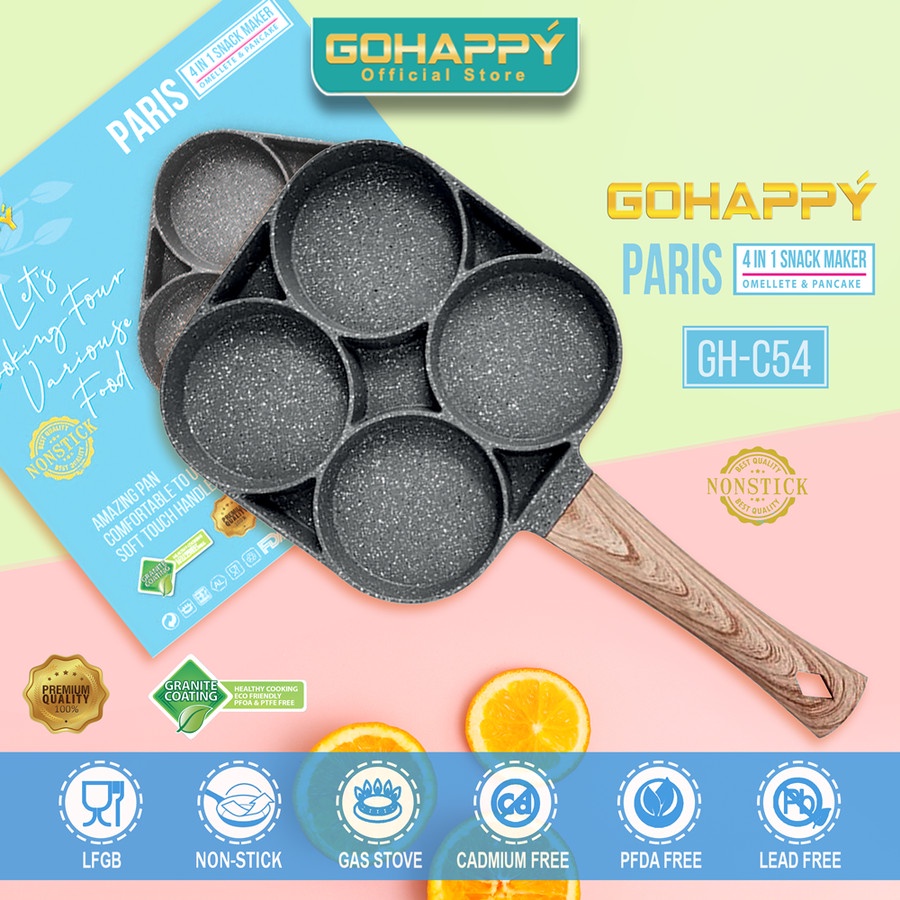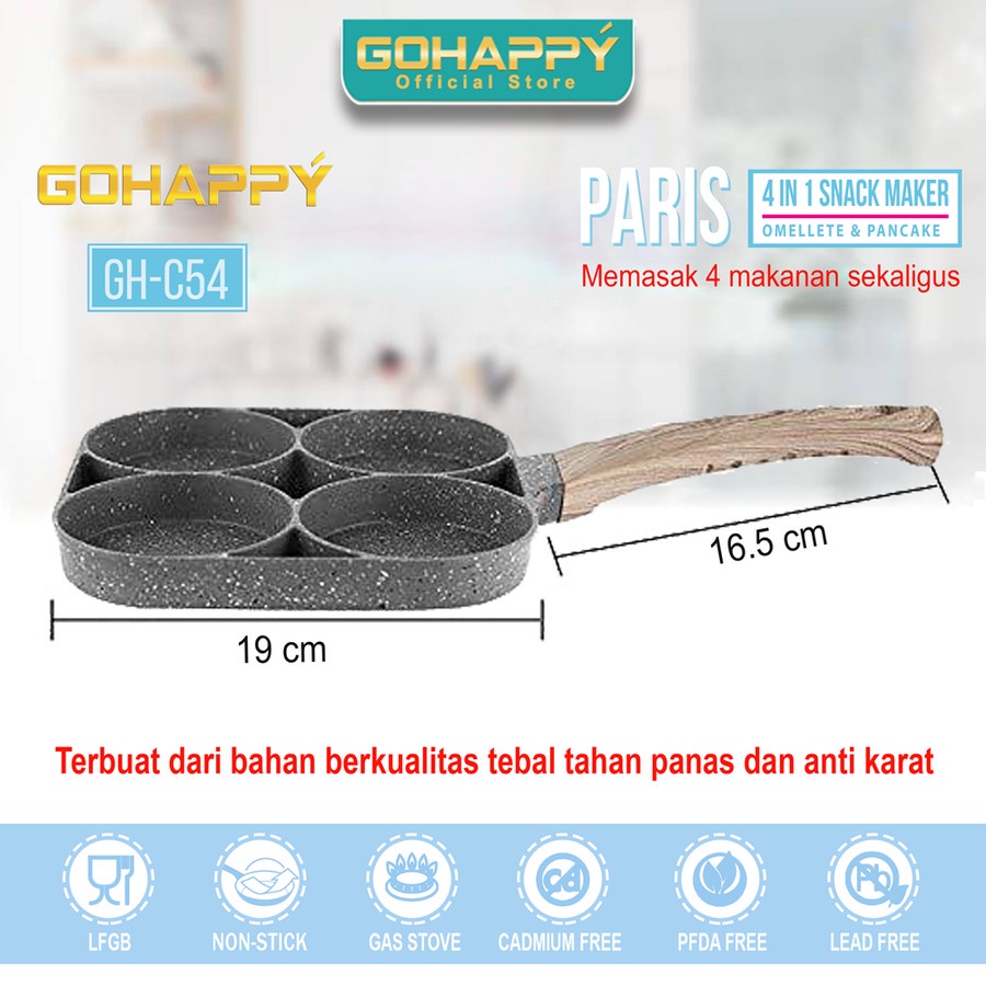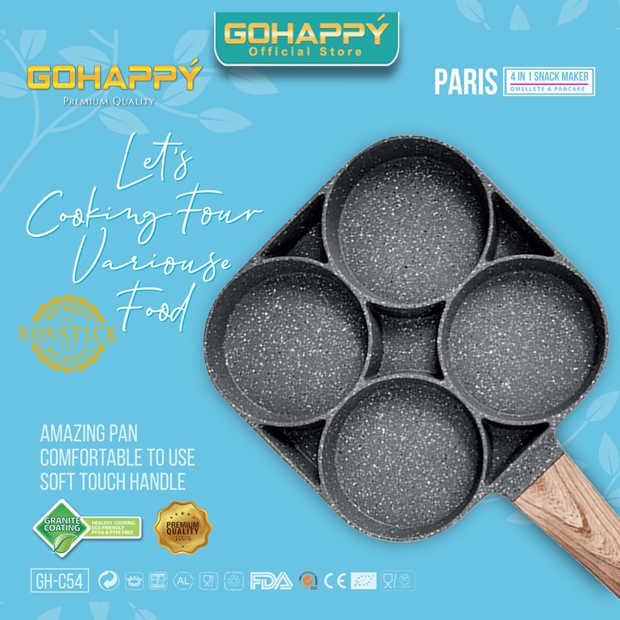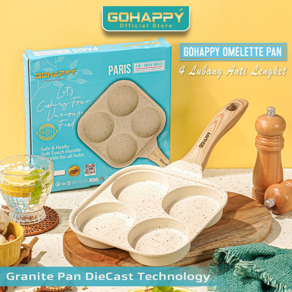 PANCI OMELETTE PAN GOHAPPY | Panci Cetakan kue breakfast 4 in 1 telur mie pancake Martabak mini 4 lubang paris GHC54 Alat panggang grill pan, panci pemanggang Nonstick wajan omelet tamagoyaki