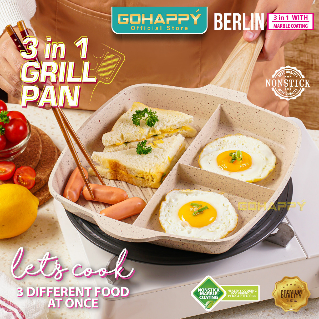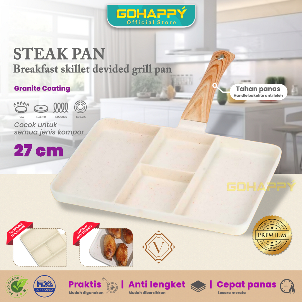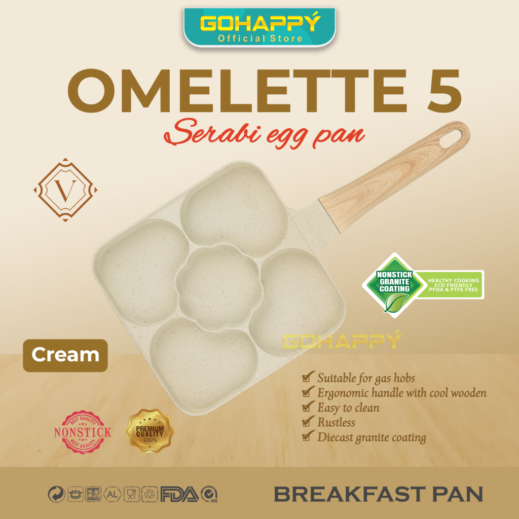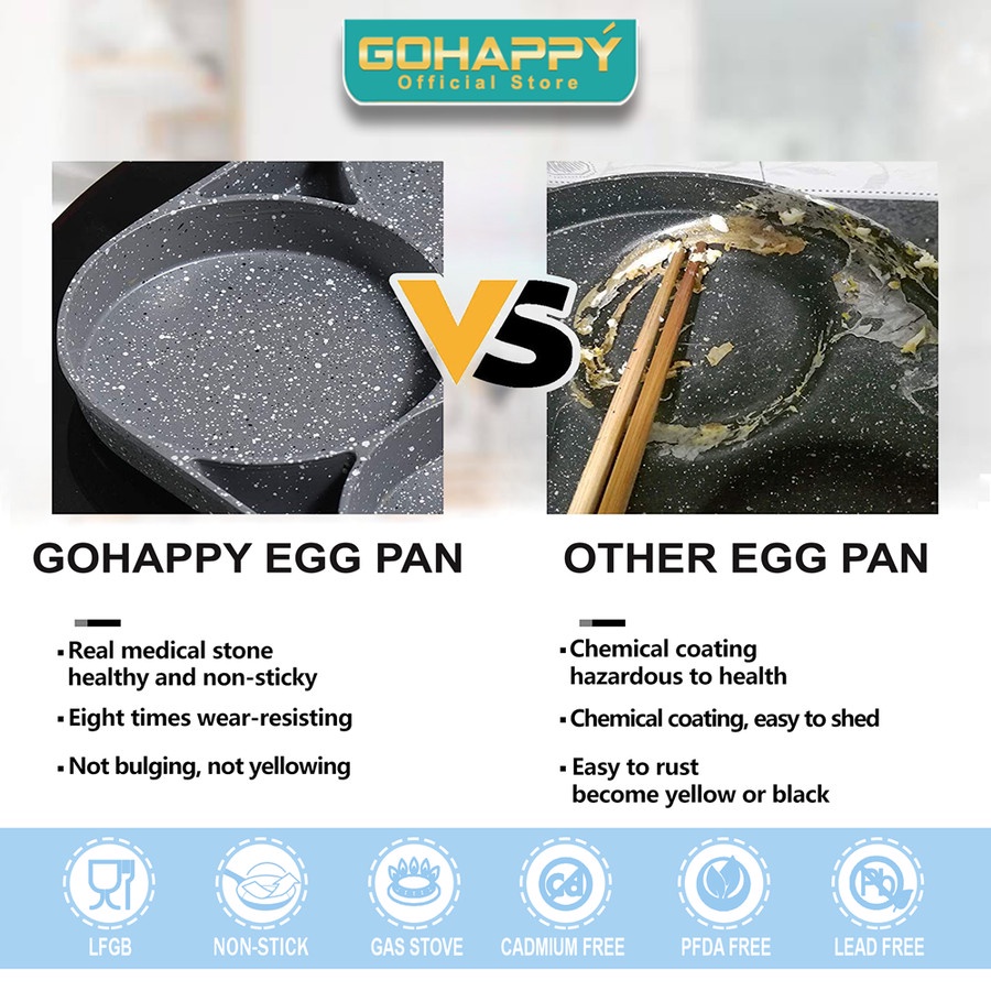 PANCI OMELETTE PAN GOHAPPY | Panci Cetakan kue breakfast 4 in 1 telur mie pancake Martabak mini 4 lubang paris GHC54 Alat panggang grill pan, panci pemanggang Nonstick wajan omelet tamagoyaki