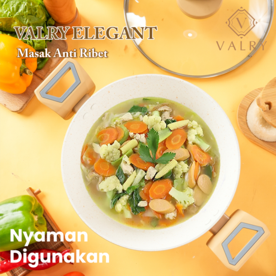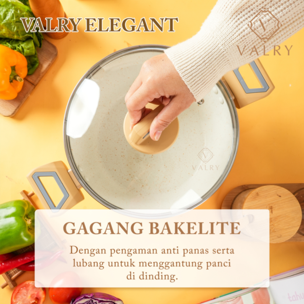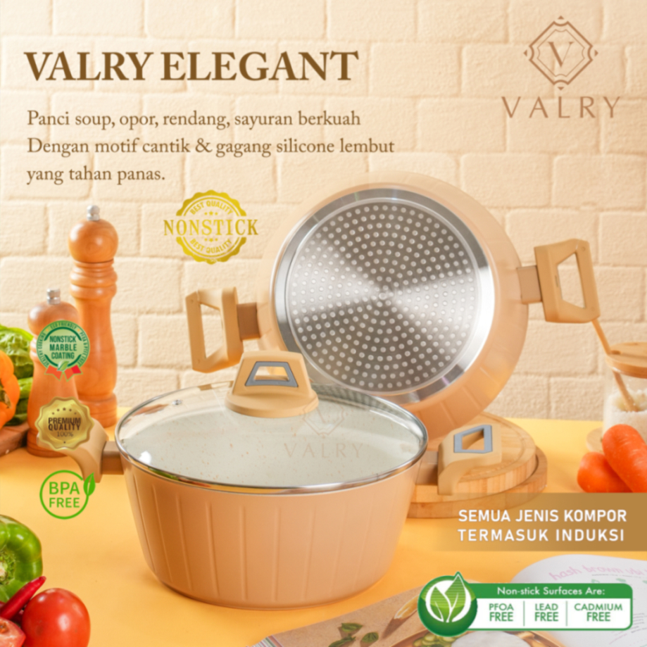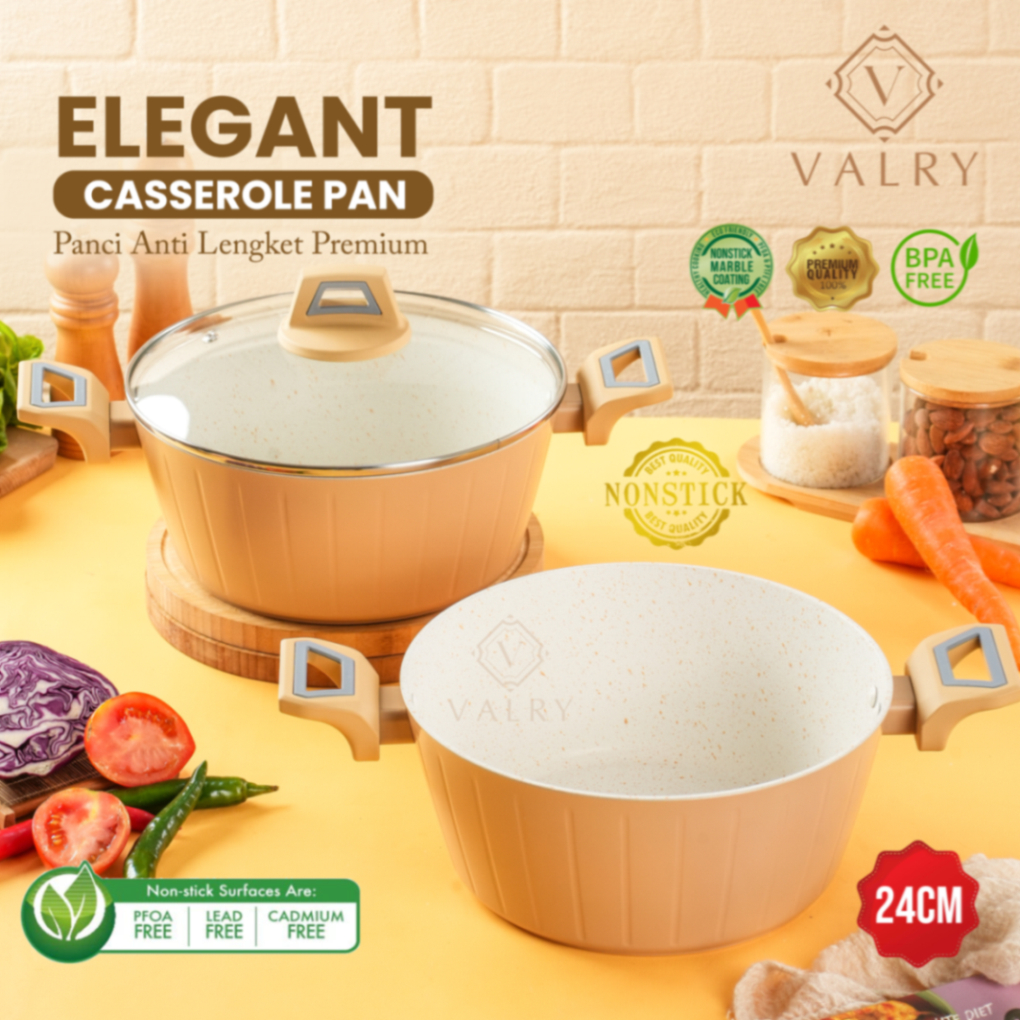 wajan stock pot CASSEROLE SET STEAMER Glass lid elegant valry marble putih anti lengket SEMUA KOMPOR