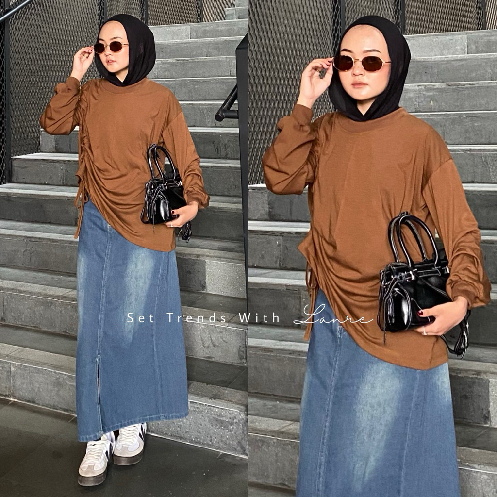 Senorita Blouse Serut Tali Depan Bahan Kaos Combed Oversized Atasan Wanita Lengan Panjang