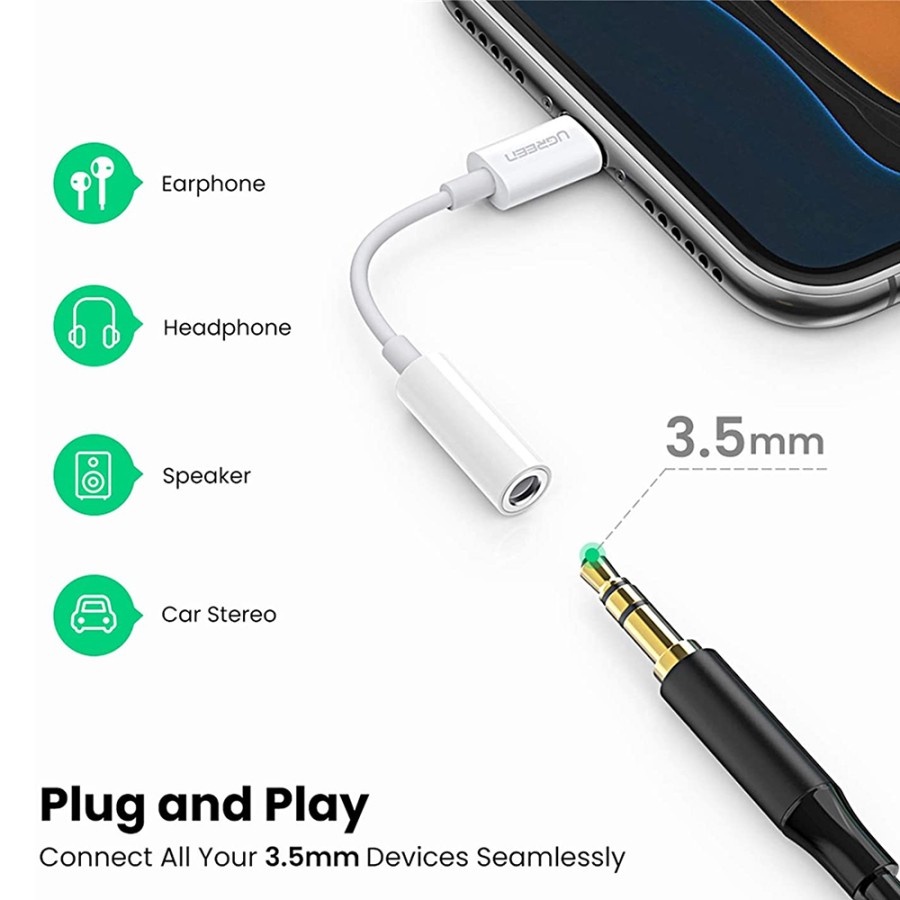 Adapter Cable Lightning Jack Audio 3.5mm MFI UGREEN Converter iPhone