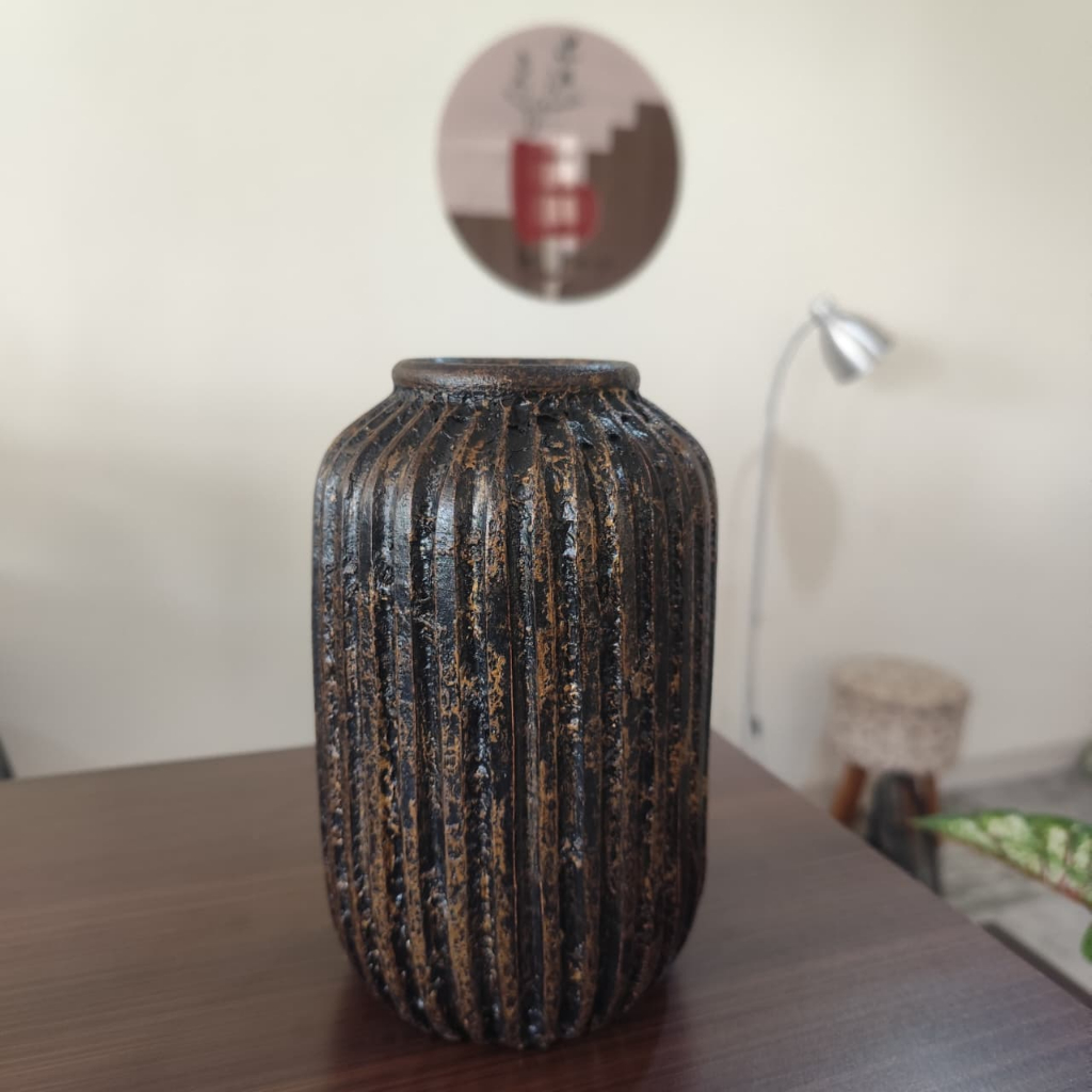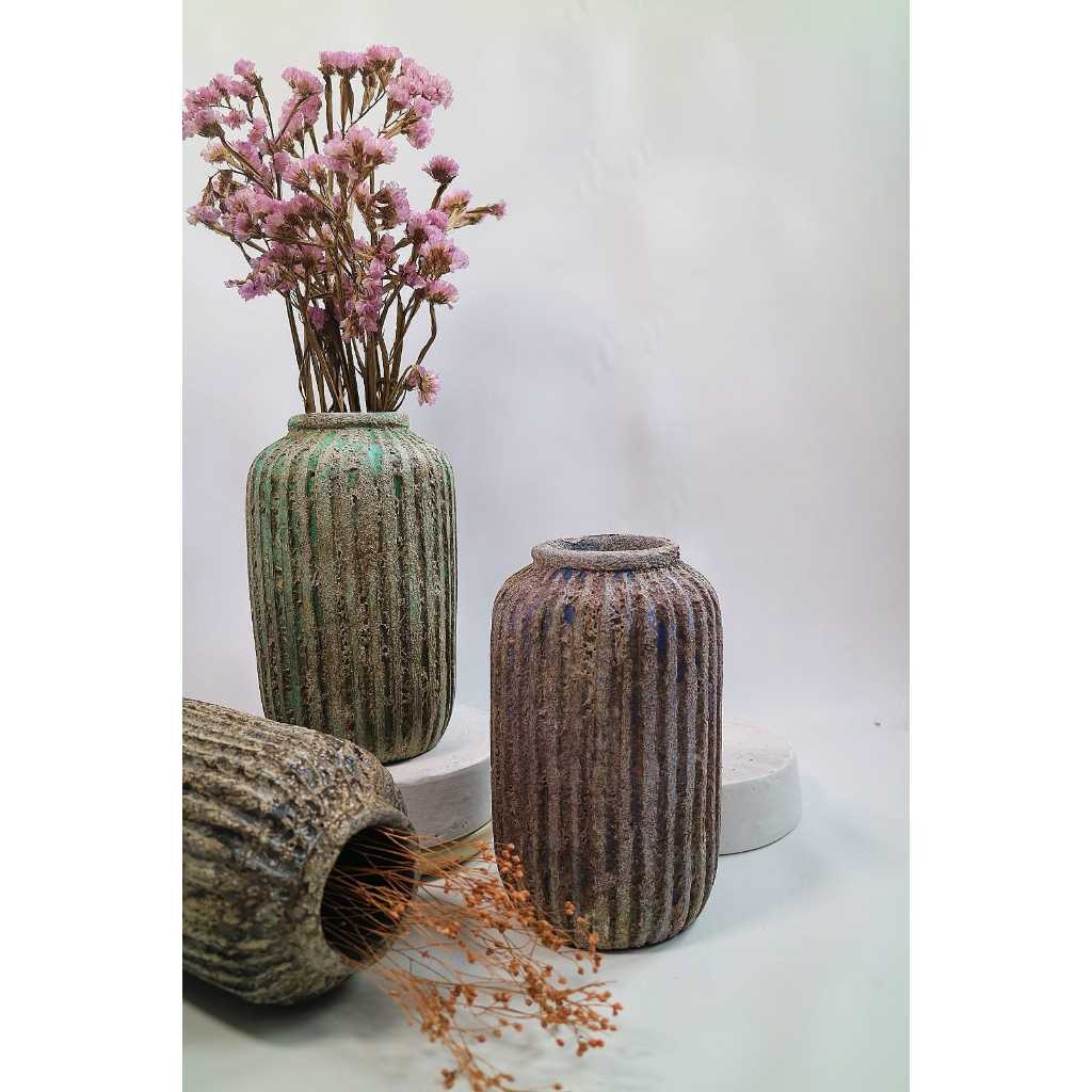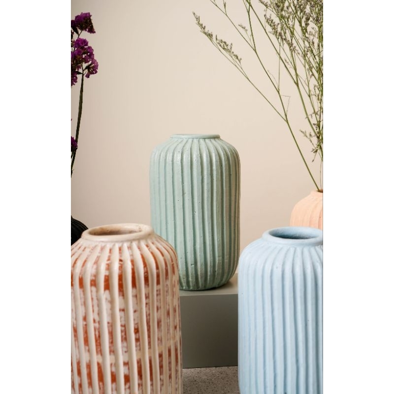 Vas Bunga Terakota Estetik Minimalis Vintage D4T20 Stripe