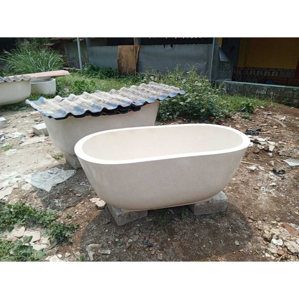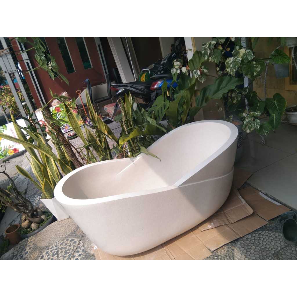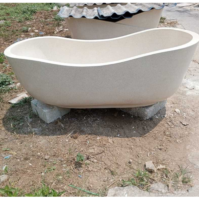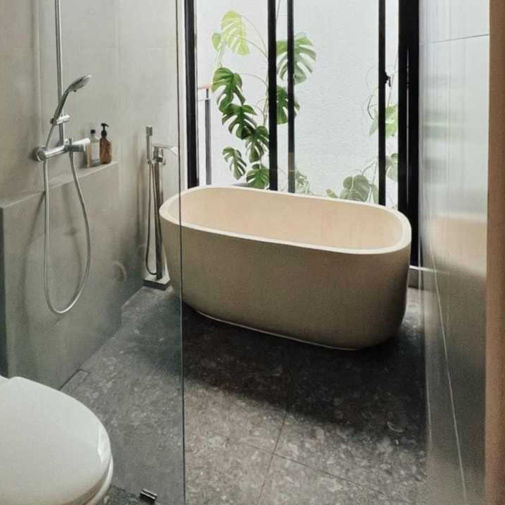 Bathtub Terrazzo Premium Oval Freestanding | Bak Mandi Minimalis Modern Luxury Cream Beige | 170x70x60 cm