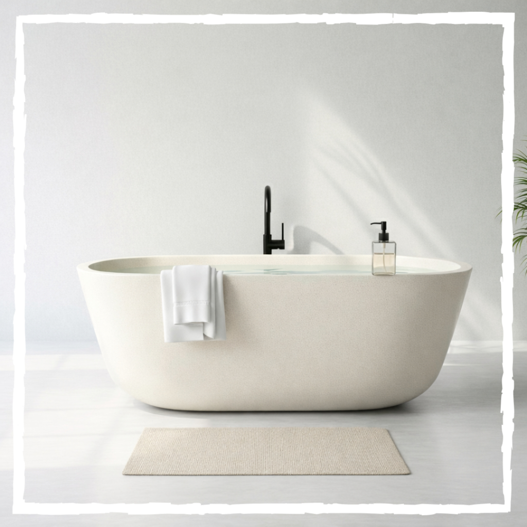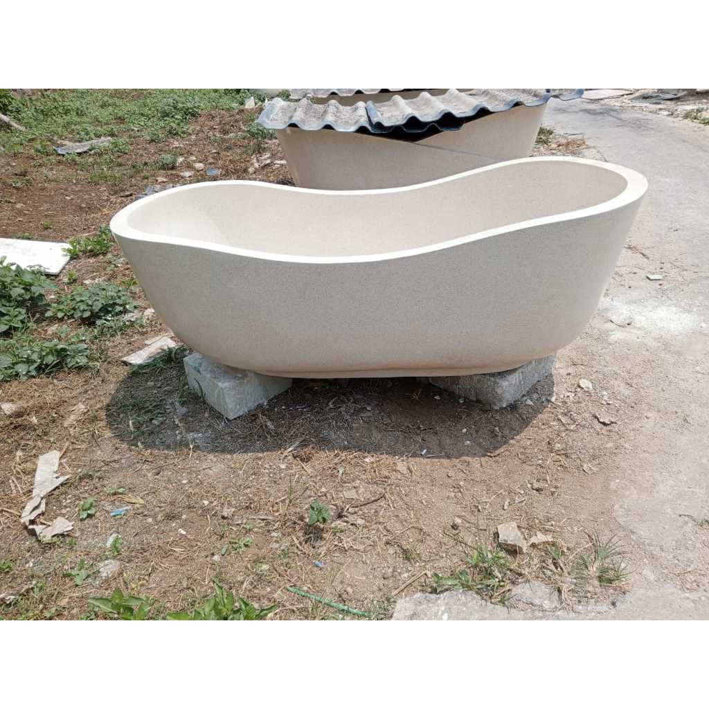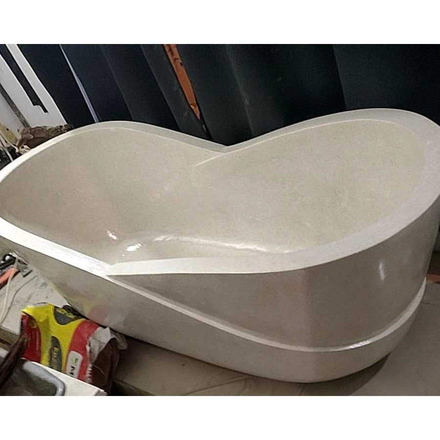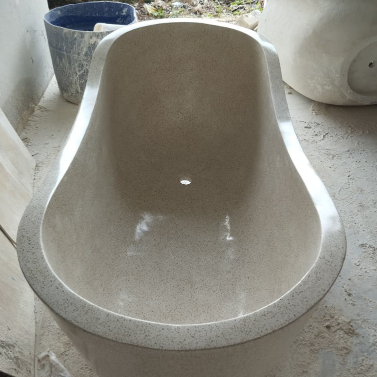 Bathtub Terrazzo Premium Oval Freestanding | Bak Mandi Minimalis Modern Luxury Cream Beige | 170x70x60 cm