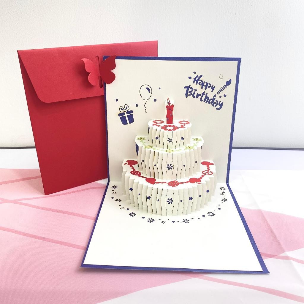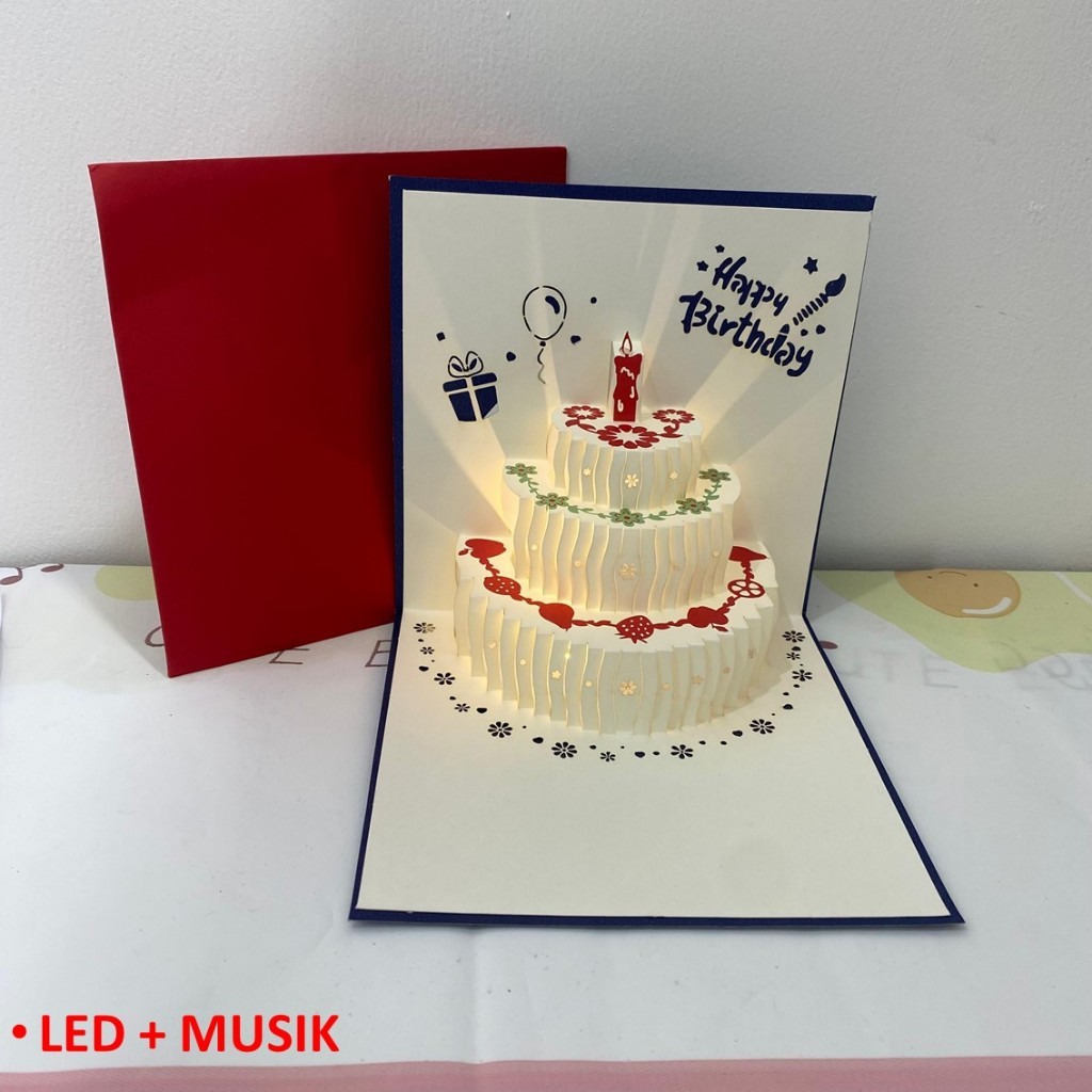 MMM Kartu Ucapan LED 3D Pop Up Bentuk Kue Ulang Tahun Kartu Ucpana Musik Ulang Tahun Happy Birthday Card Berwarna-Warni Kartu Ulang Tahun Hadiah Ulang Tahun Perlengkapan Pesta